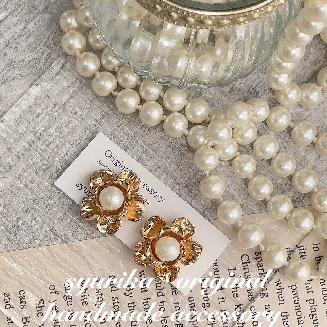 大人フラワーピアス/イヤリングです⸜( ´ ꒳ ` )⸝♥︎︎∗︎*゚