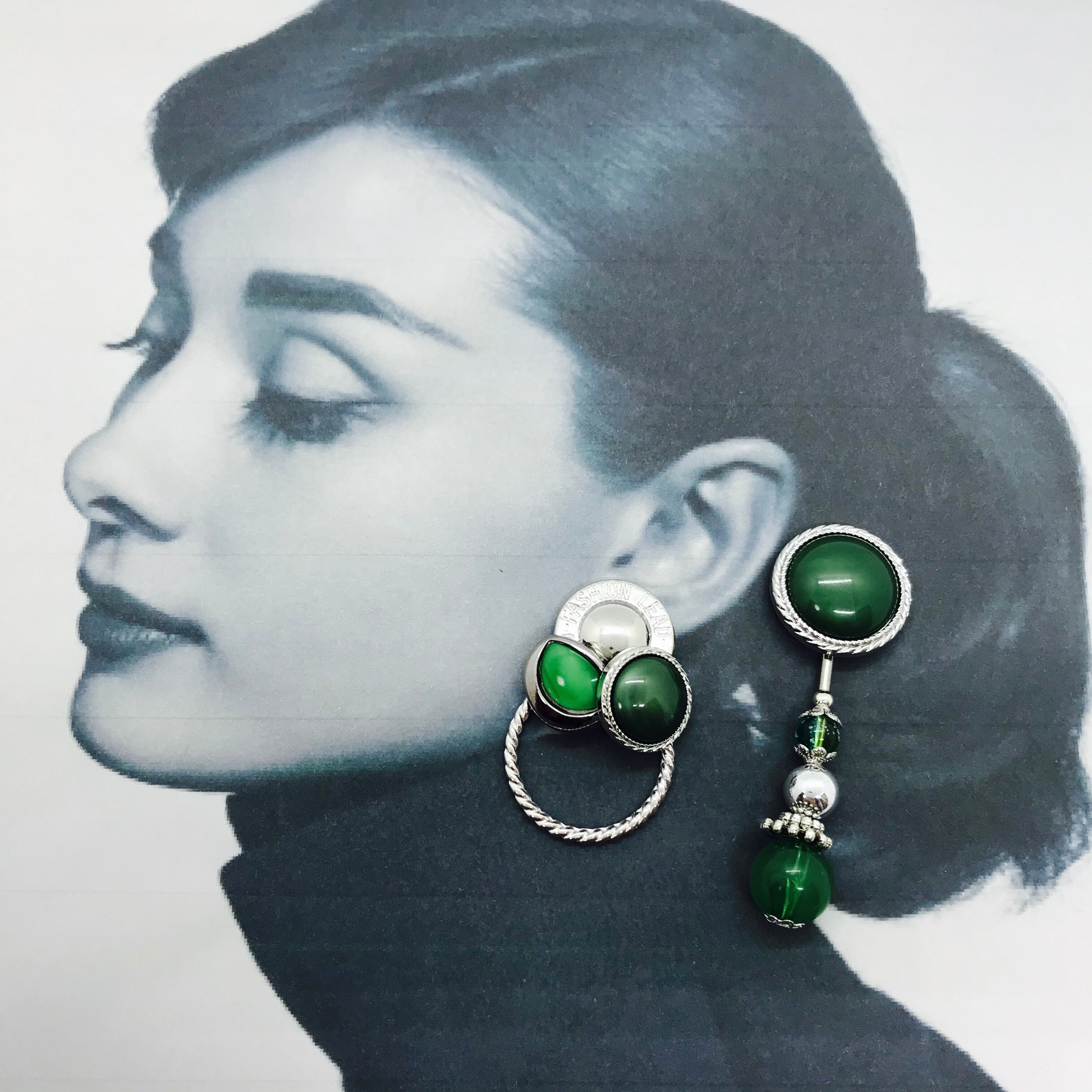 【no.85】アンティークボタン アシンメトリーピアス/イヤリング
