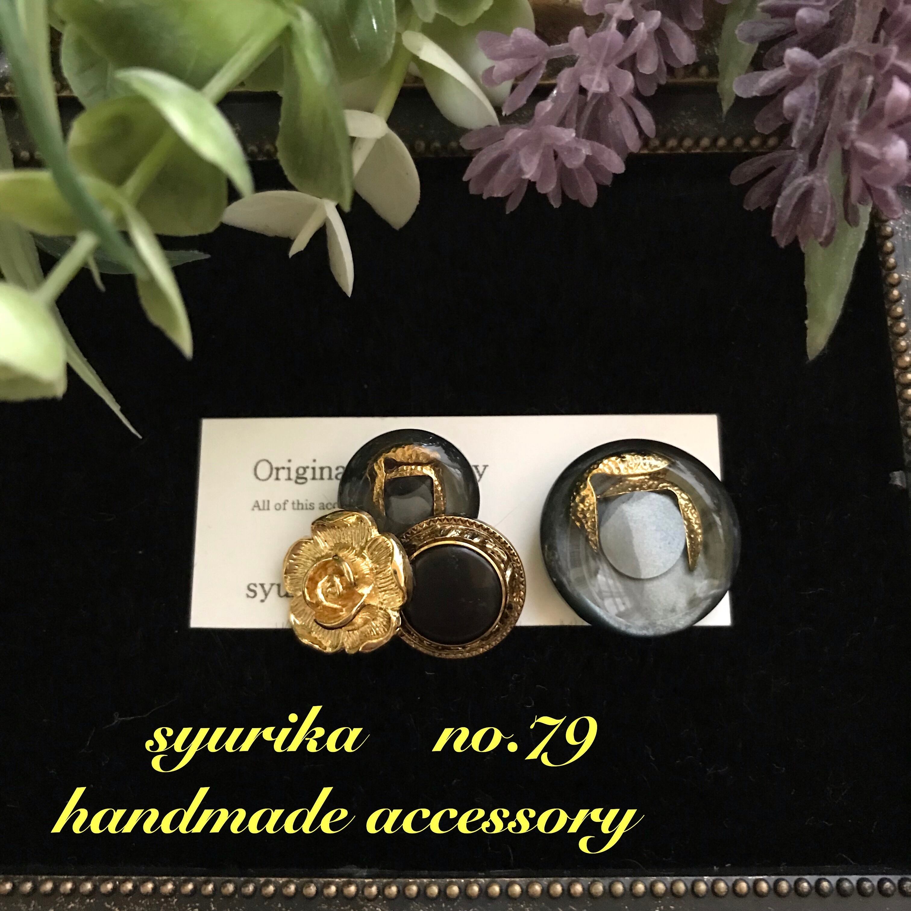 【no.79】アンティークボタン アシンメトリーピアス/イヤリング