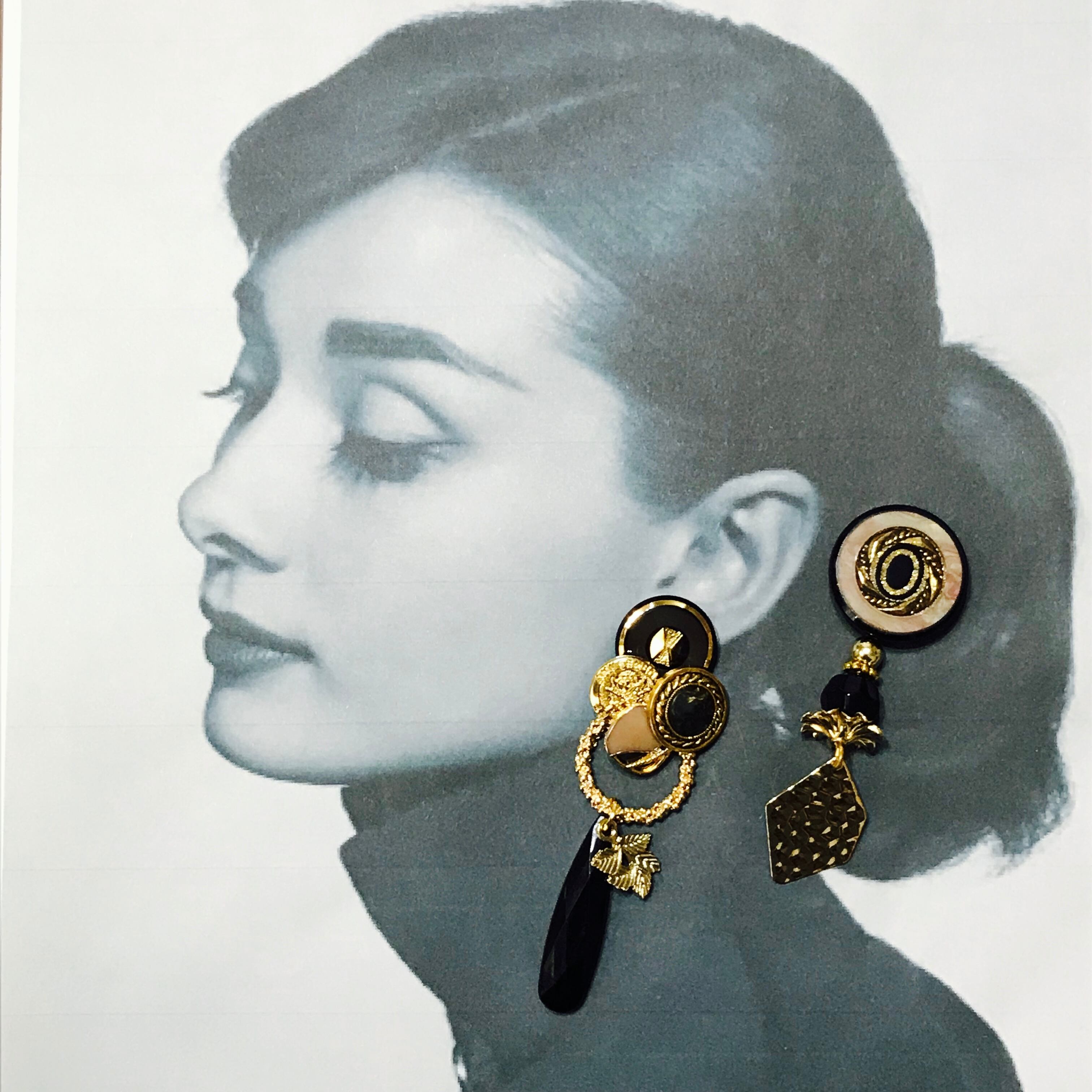 【no.109】アンティークボタン アシンメトリーピアス/イヤリング
