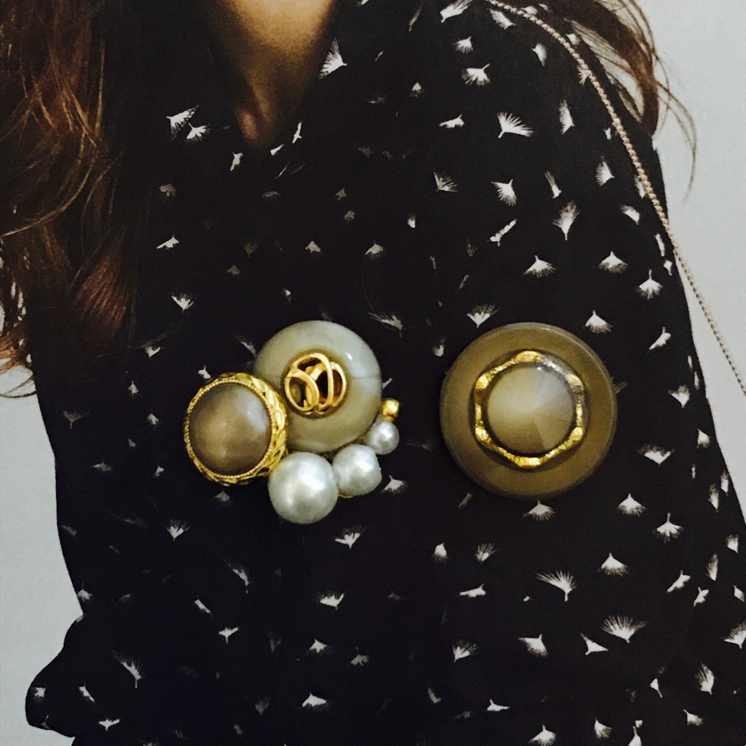 【no.165】アンティークボタン アシンメトリーピアス/イヤリング