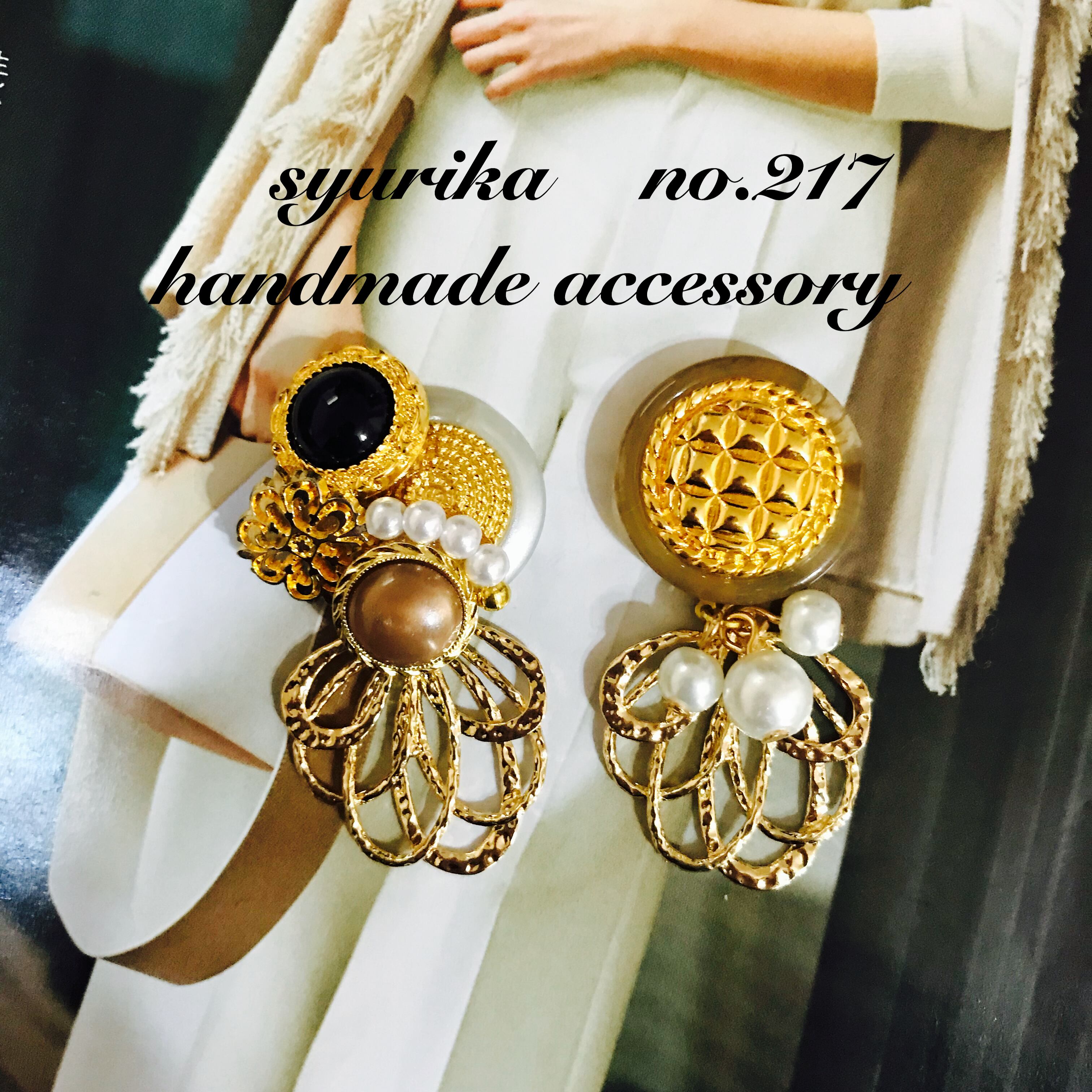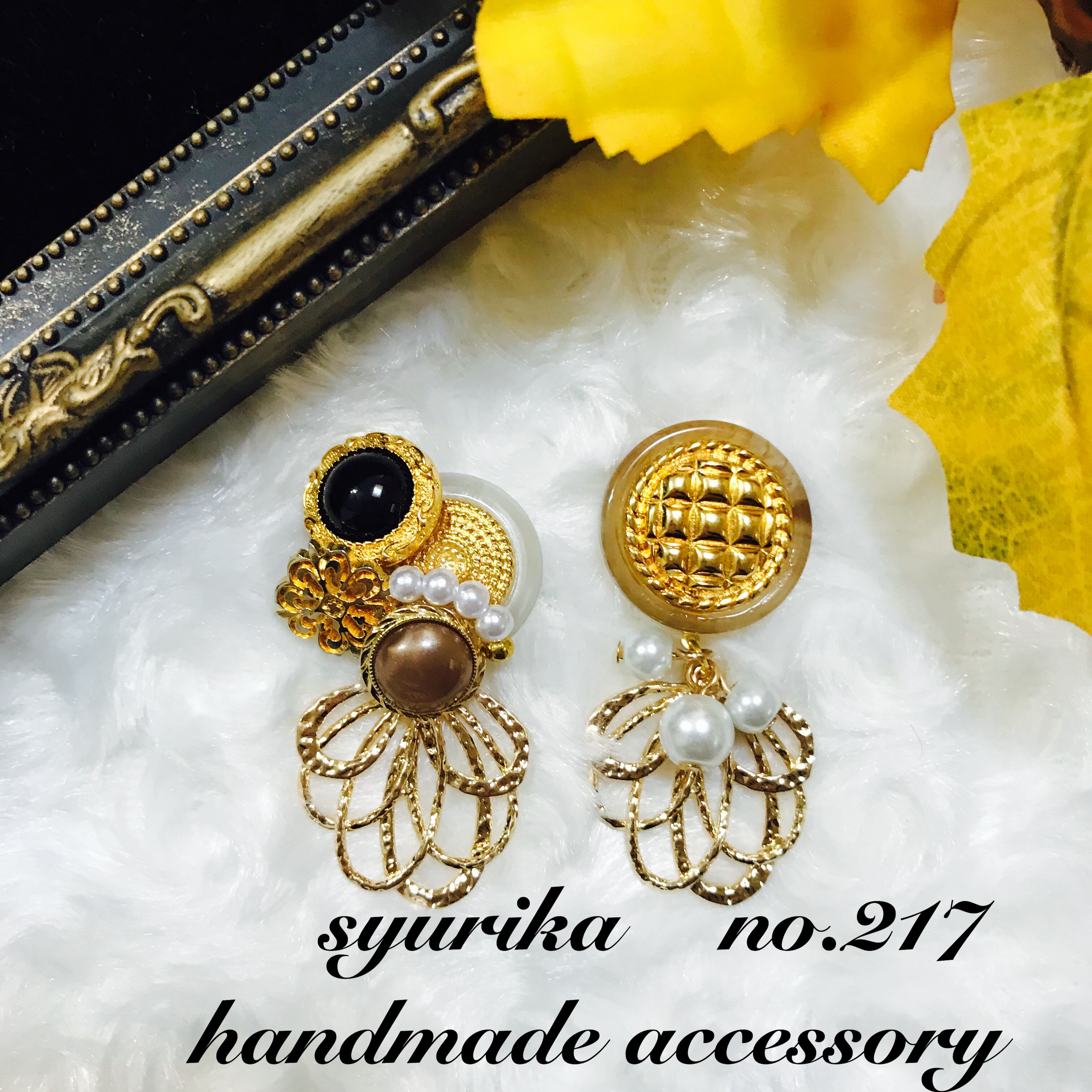 【no.217】アンティークボタン アシンメトリーピアス