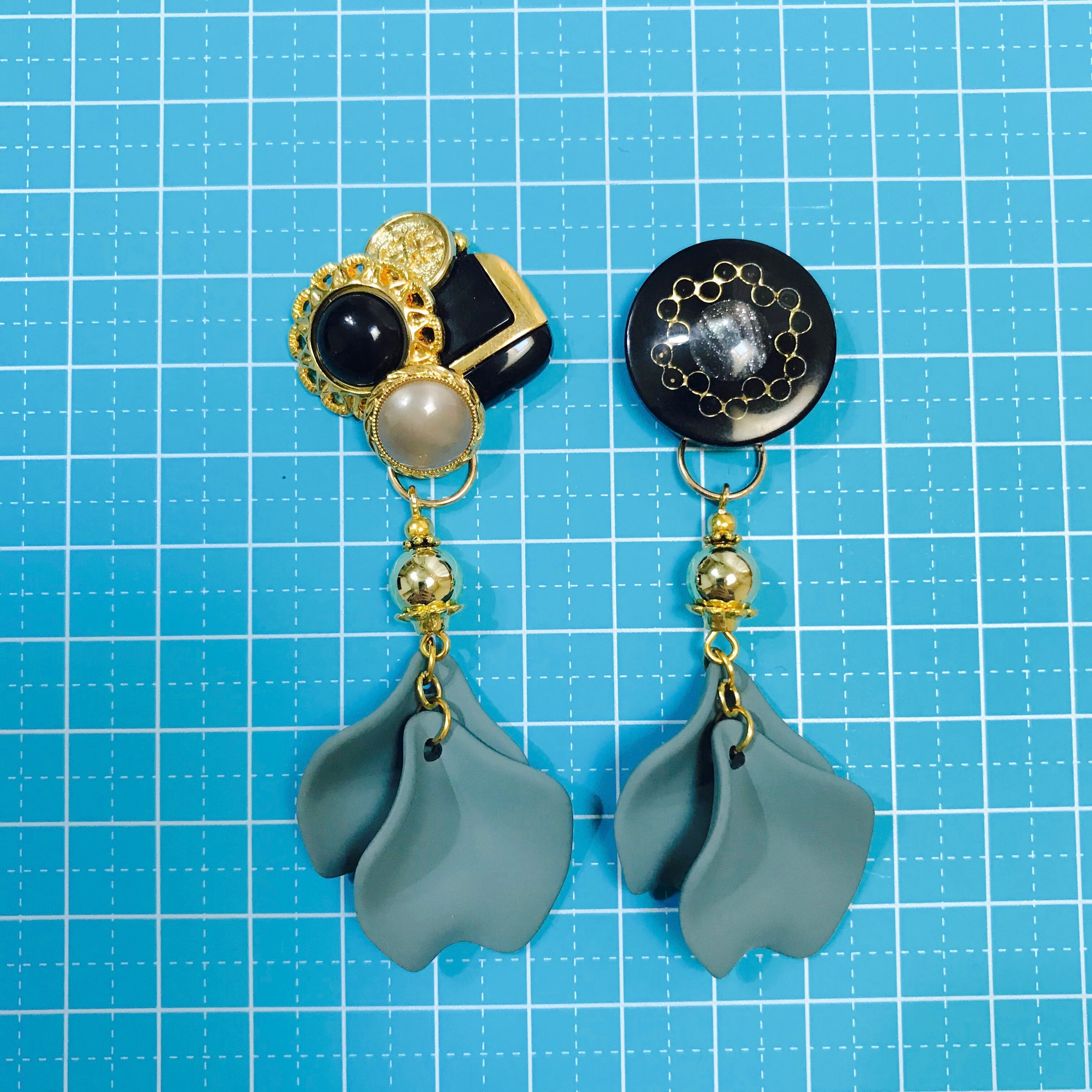 【no.70】アンティークボタン アシンメトリーピアス