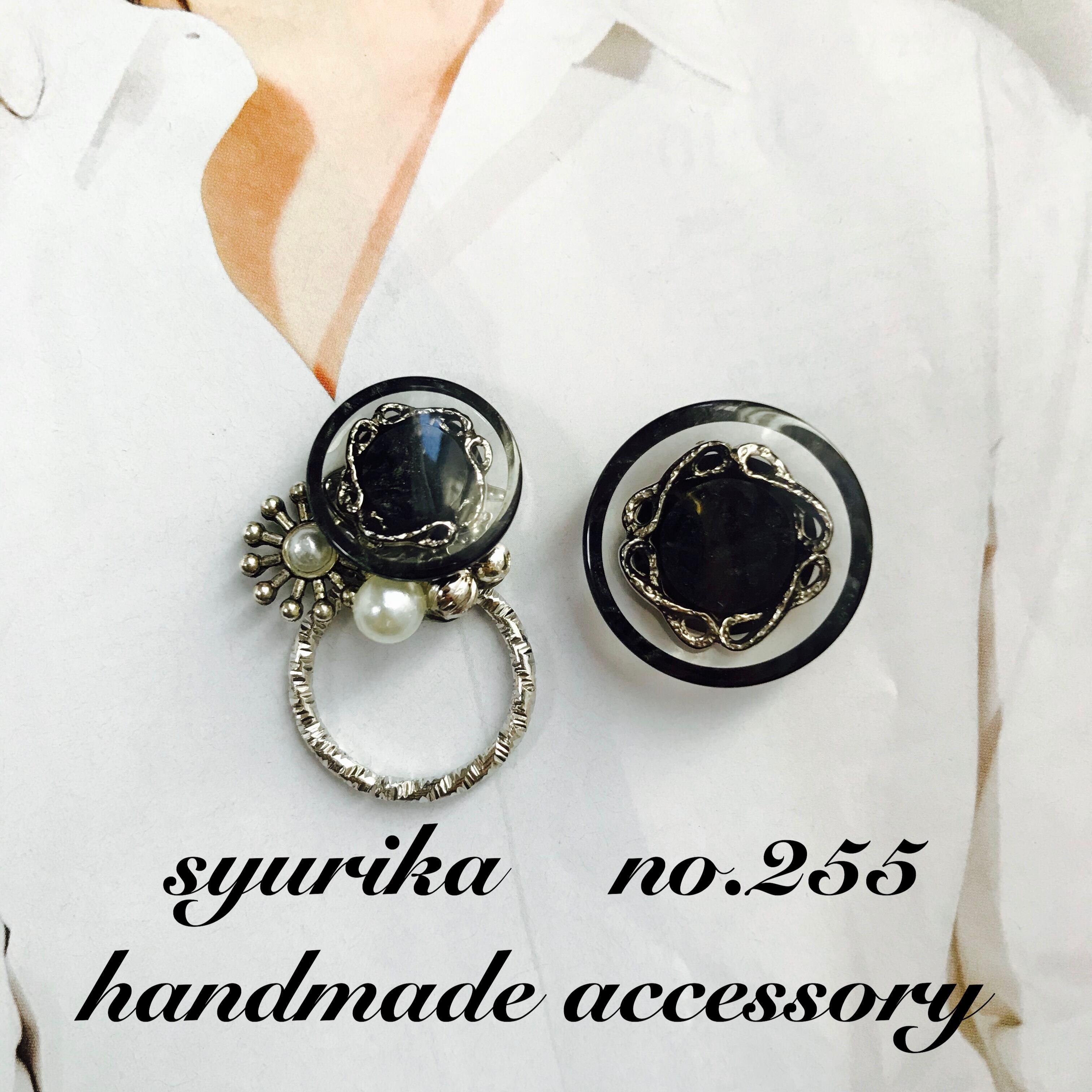 【no.255】アンティークボタン アシンメトリーピアス