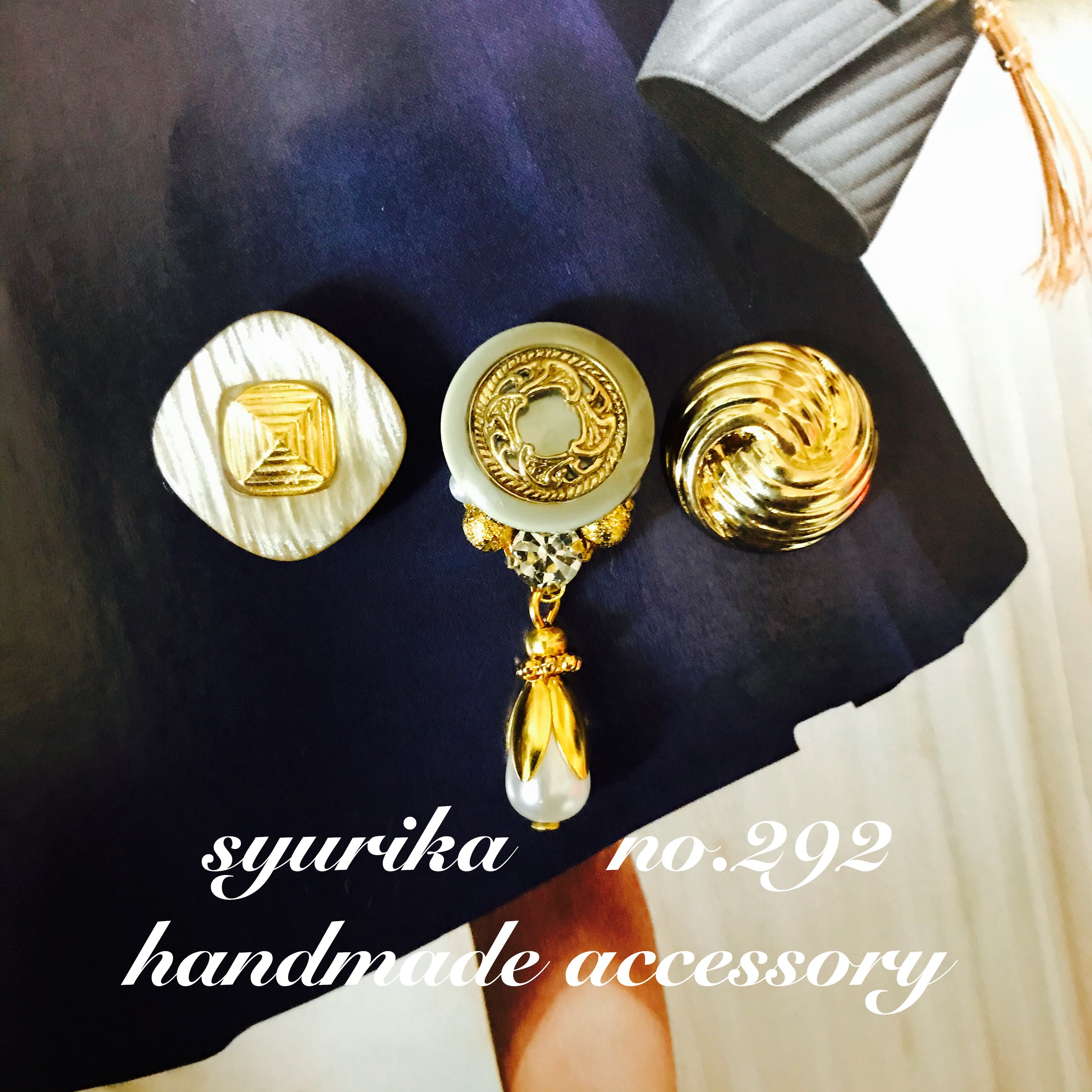 【no.292】アンティークボタン アシンメトリー3wayピアス
