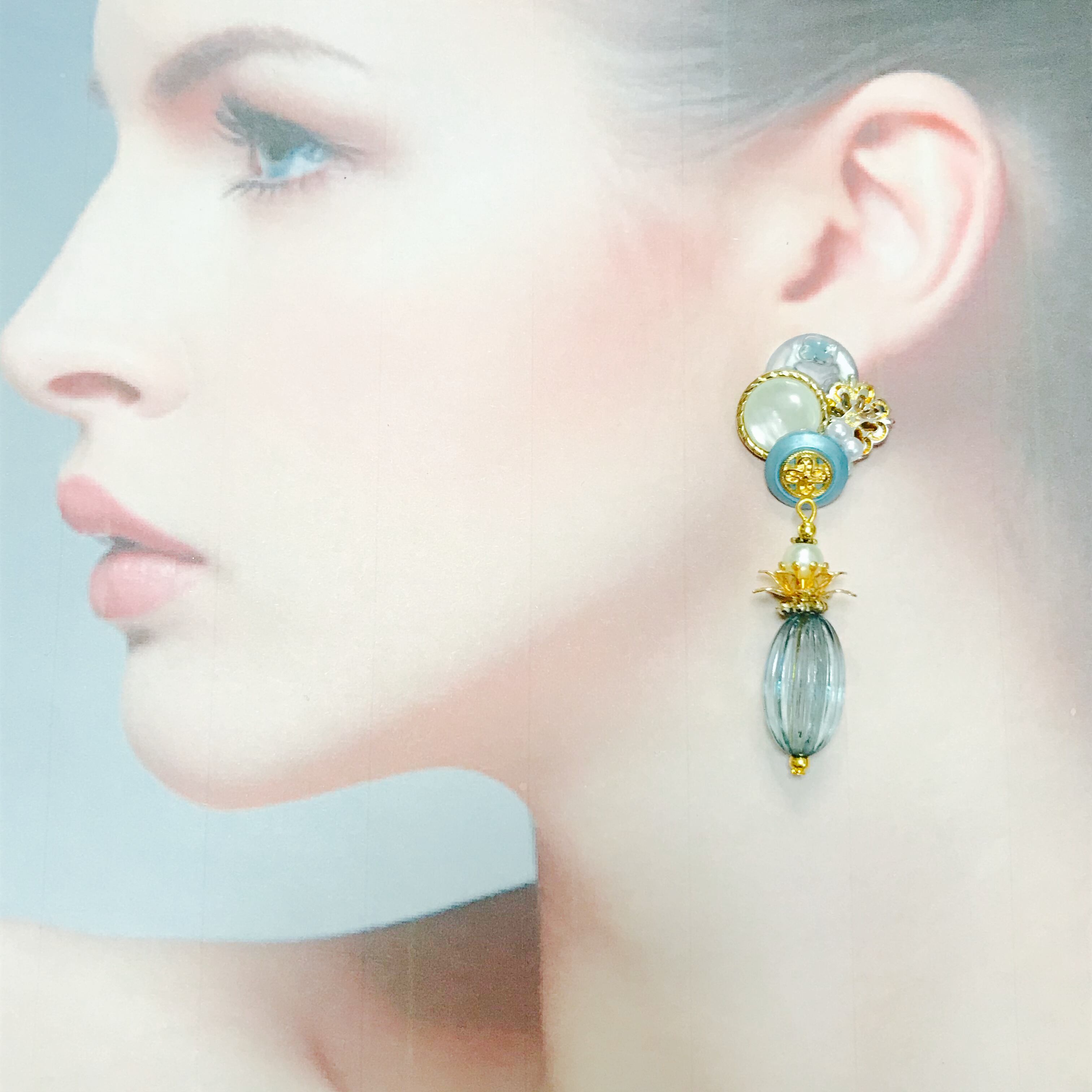 【no.346】アンティークボタン アシンメトリーピアス