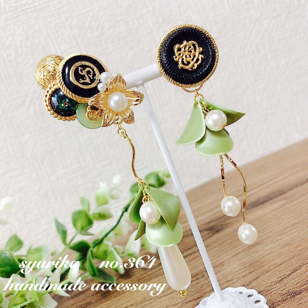 【no.364】アンティークボタン アシンメトリー片耳イヤカフピアス