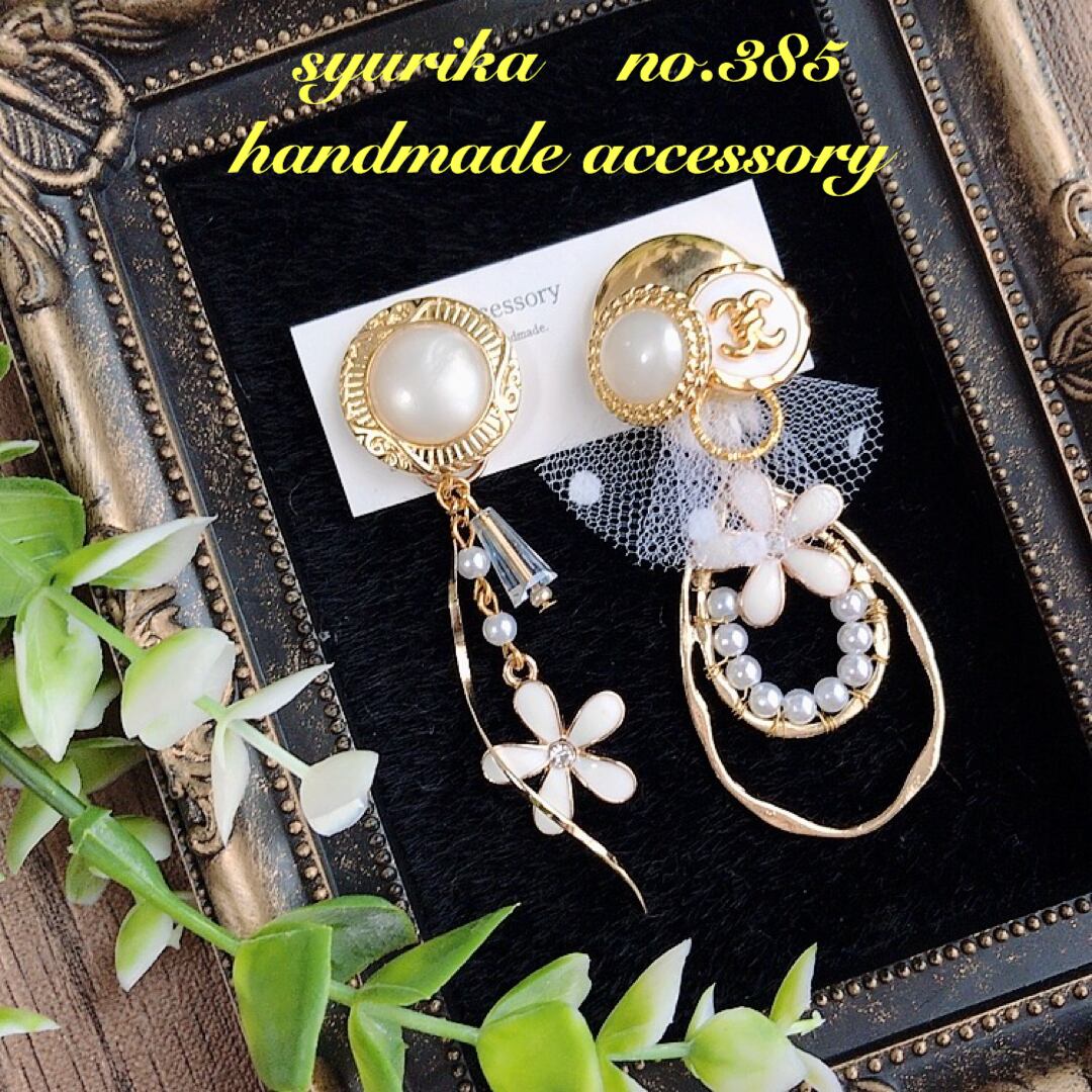 【no.385】アンティークボタン アシンメトリーピアス