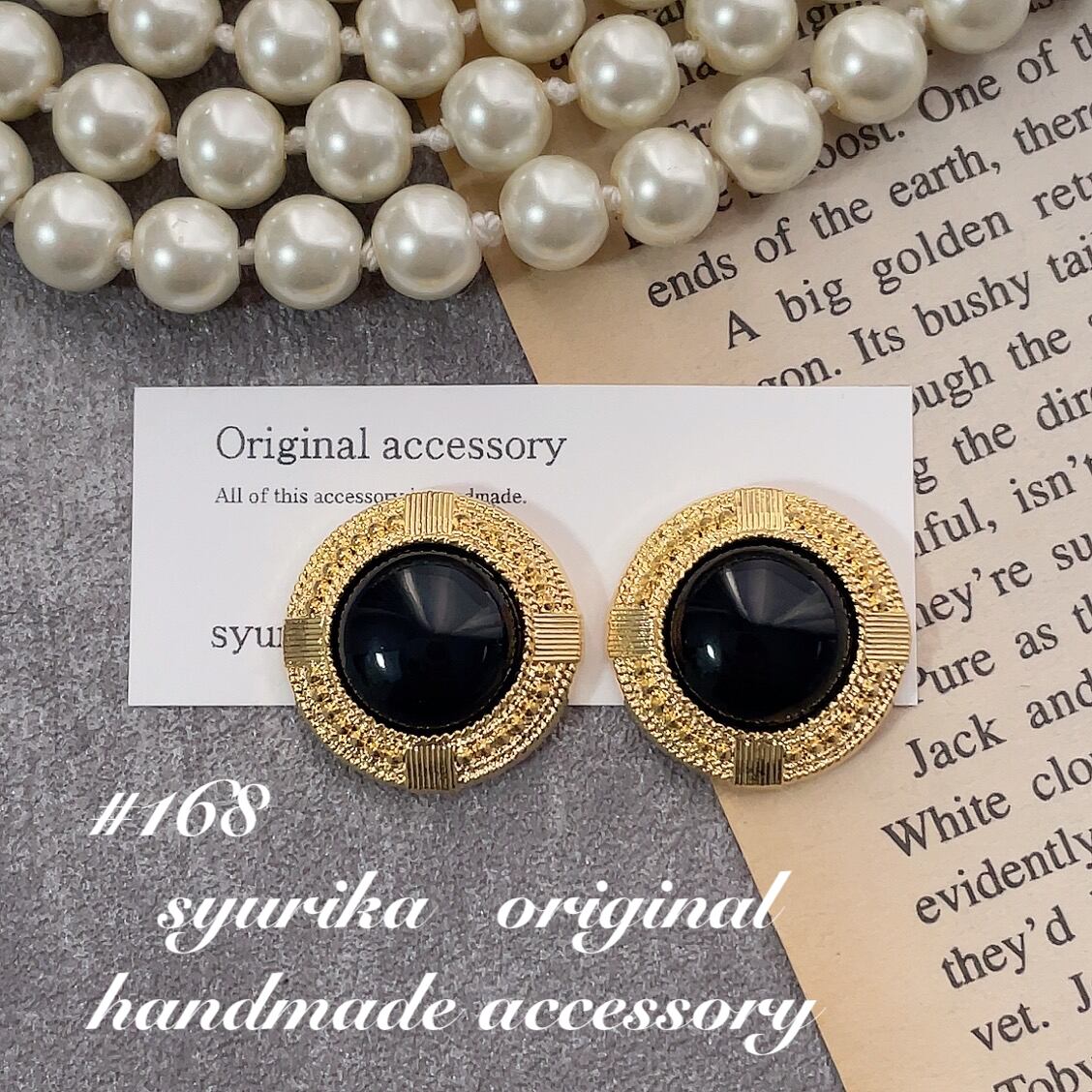 【#168】ブラック×ゴールドボタン ピアス/イヤリング