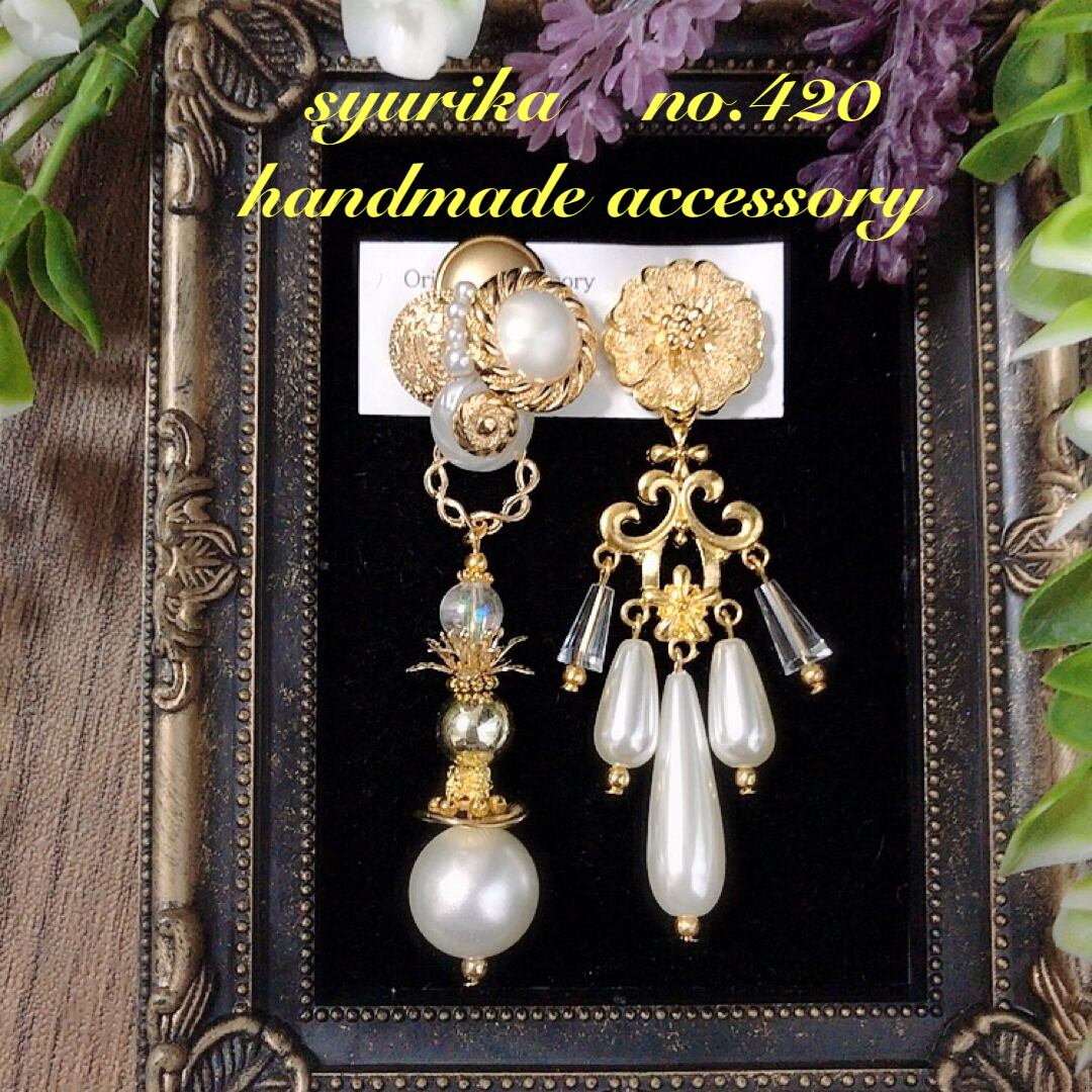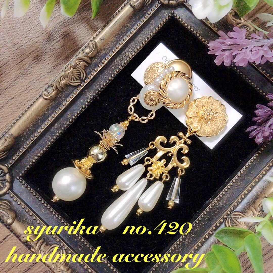 【no.420】アンティークボタン アシンメトリーピアス