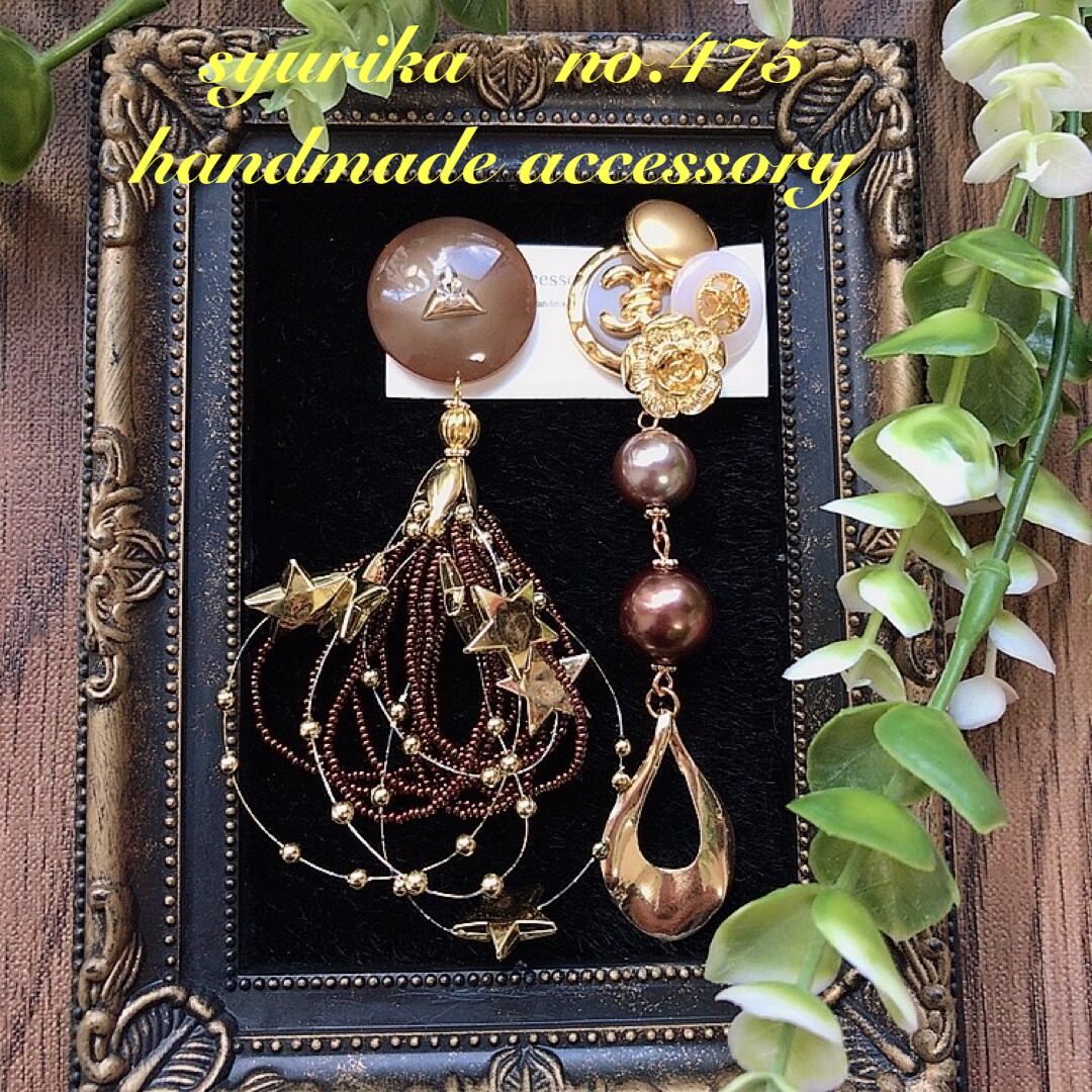 【no.475】アンティークボタン アシンメトリーピアス/イヤリング