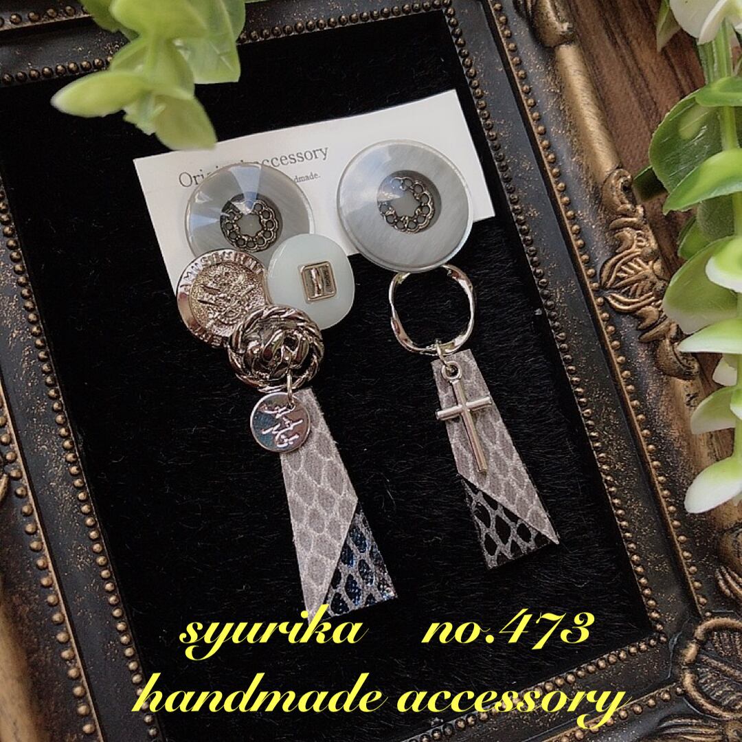 【no.473】アンティークボタン アシンメトリーピアス/イヤリング