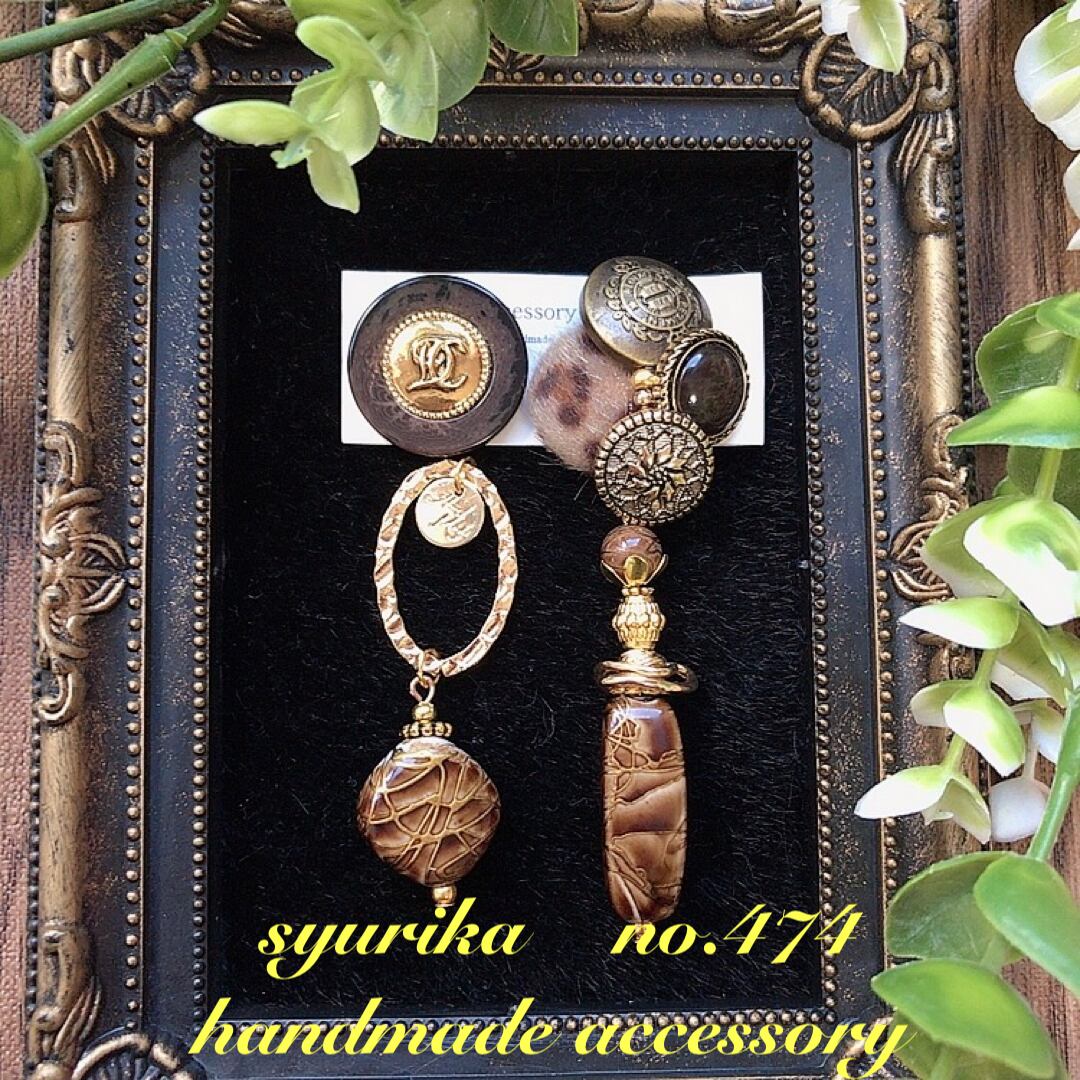【no.474】アンティークボタン アシンメトリーピアス/イヤリング