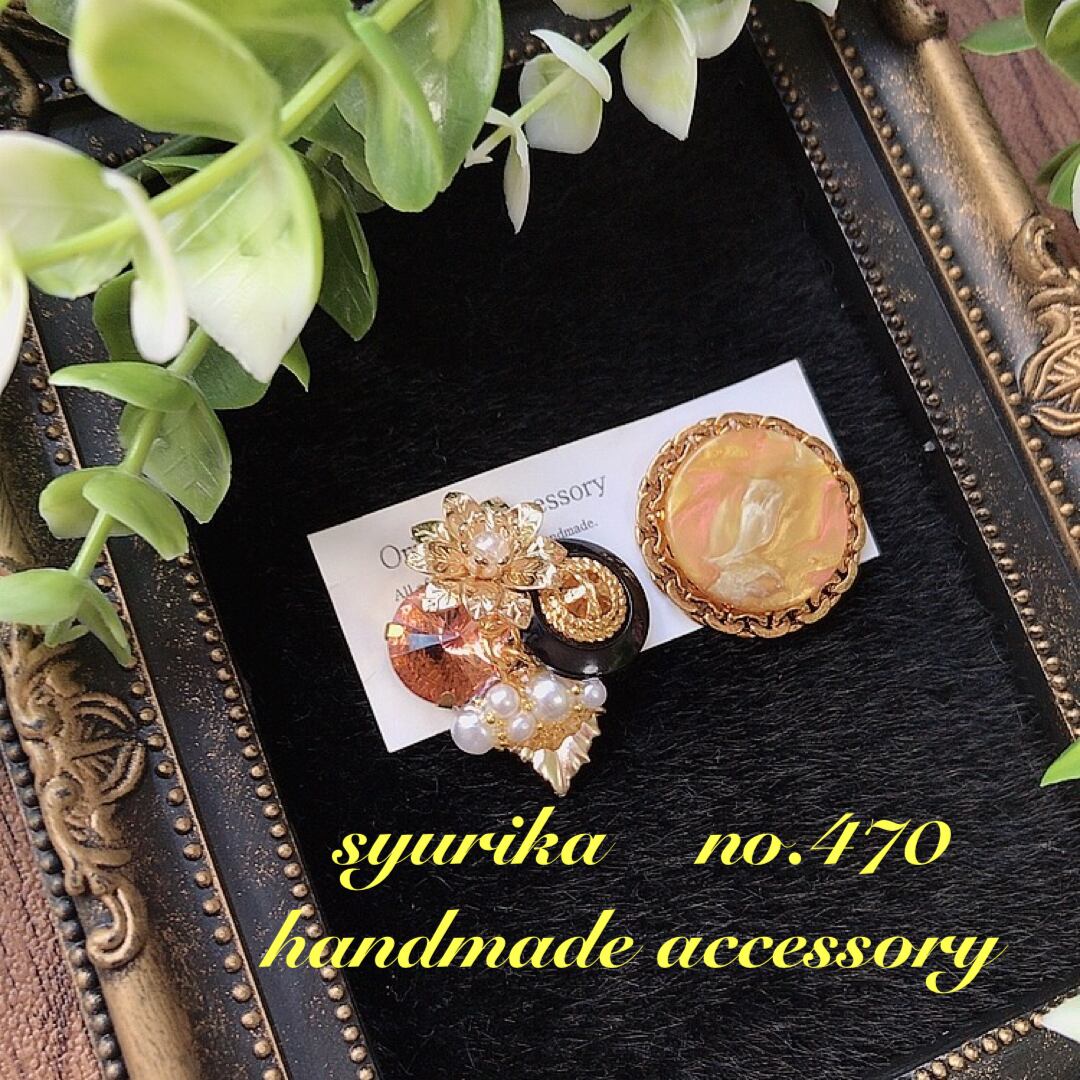 【no.470】アンティークボタン ビジューピアス/イヤリング