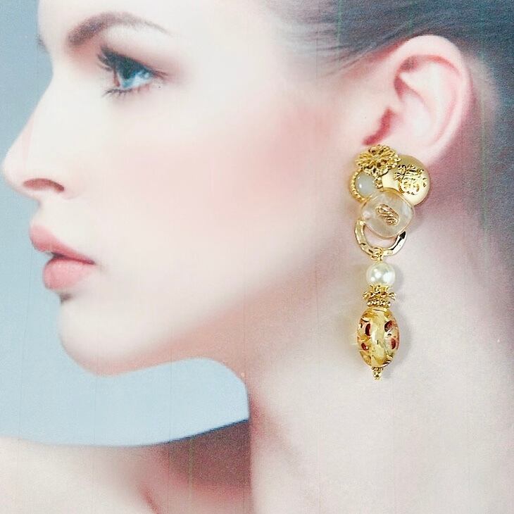 【no.395】アンティークボタン アシンメトリーピアス