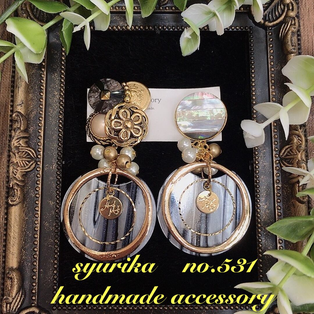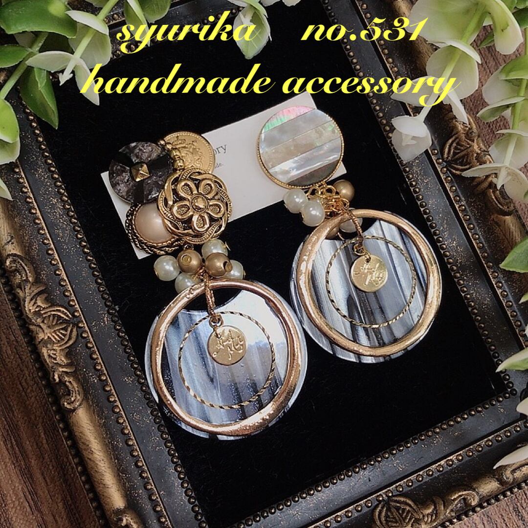 【no.531】アンティークボタン アシンメトリーピアス
