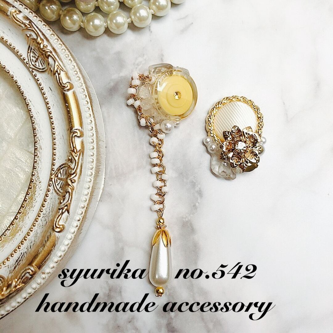 【no.542】アンティークボタン×天然石 アシンメトリーピアス/イヤリング