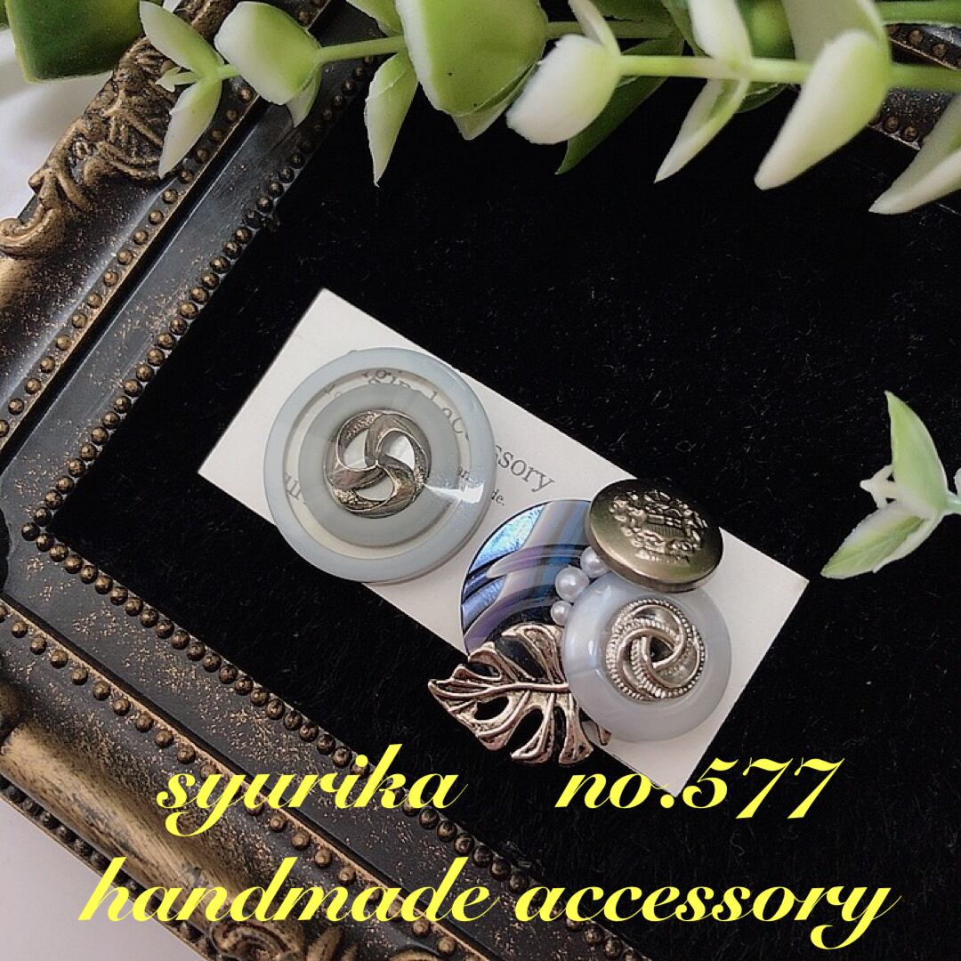 【no.577】アンティークボタン アシンメトリーピアス/イヤリング