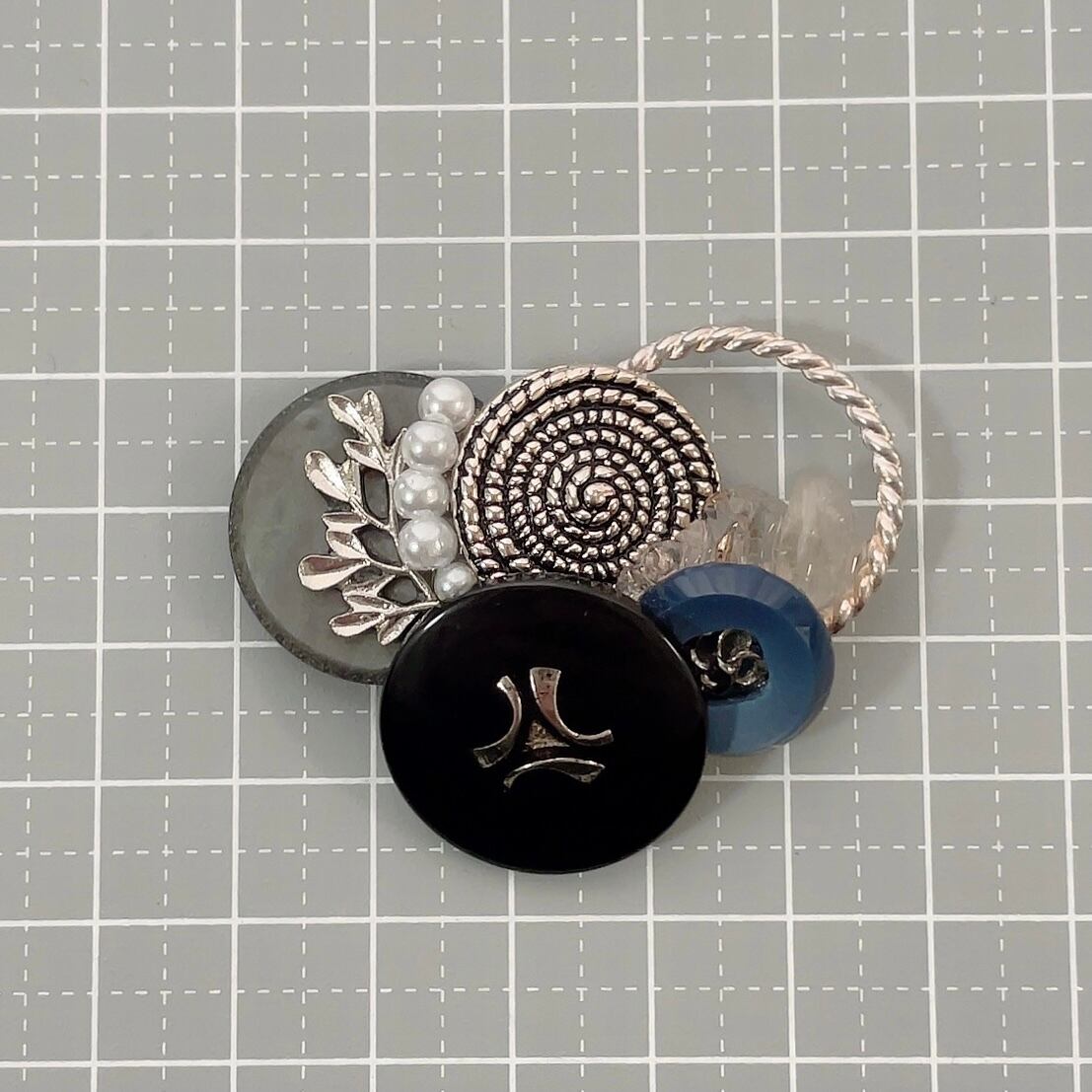 ヴィンテージボタンを使ったポニーフックです♪