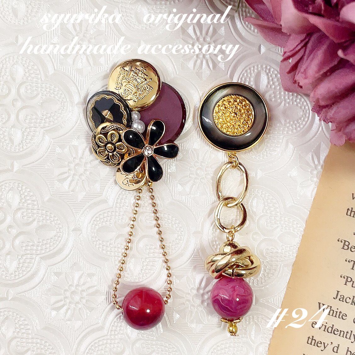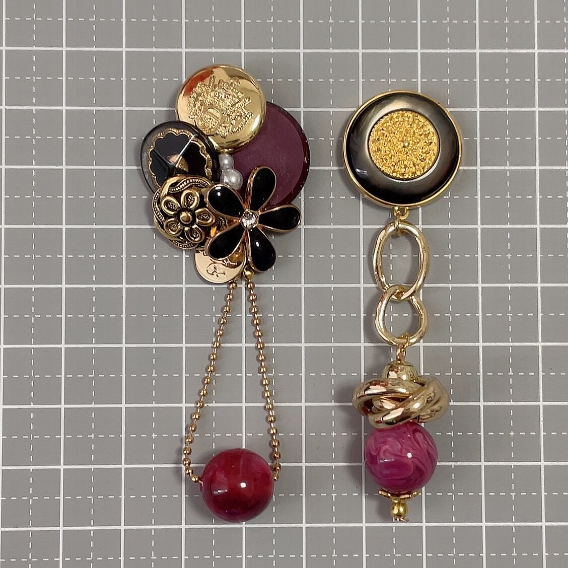 【no.24】ヴィンテージボタン アシンメトリーピアス/イヤリング