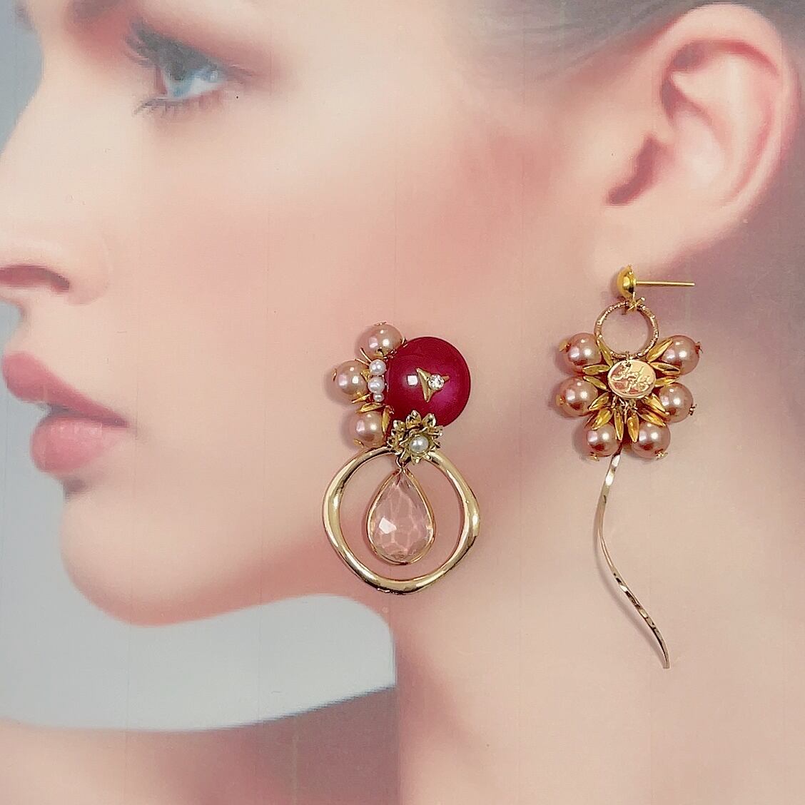 アシンメトリーのピアス/イヤリングです⸜( ´ ꒳ ` )⸝