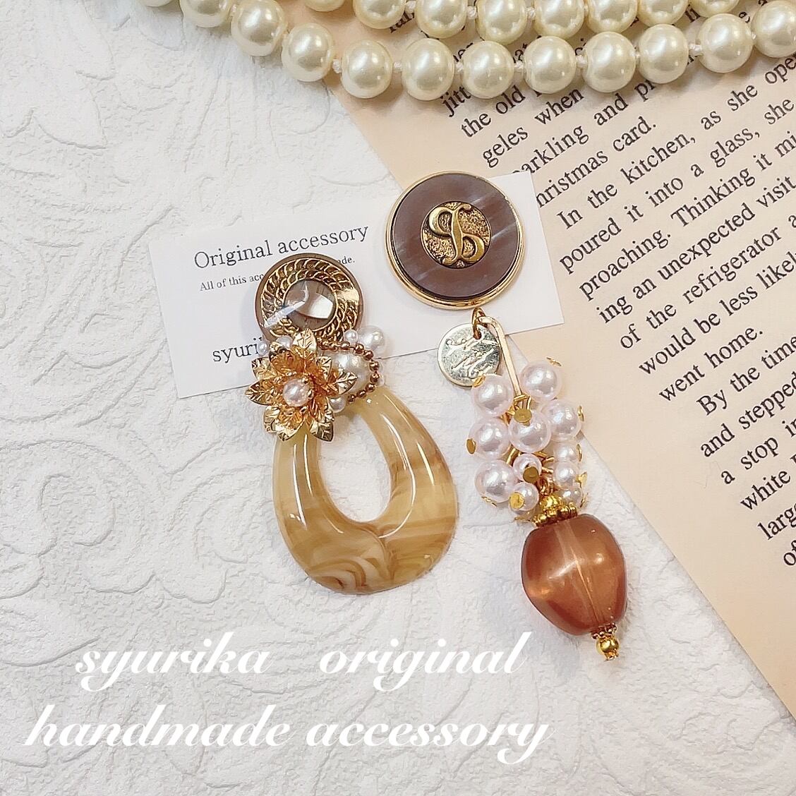 【#61】ヴィンテージボタン アシンメトリーピアス/イヤリング