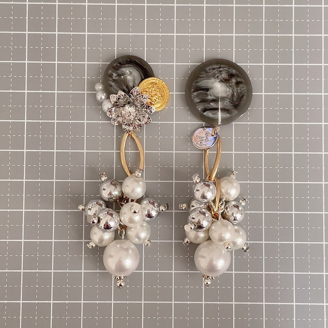 【#41】ヴィンテージボタン アシンメトリーピアス/イヤリング