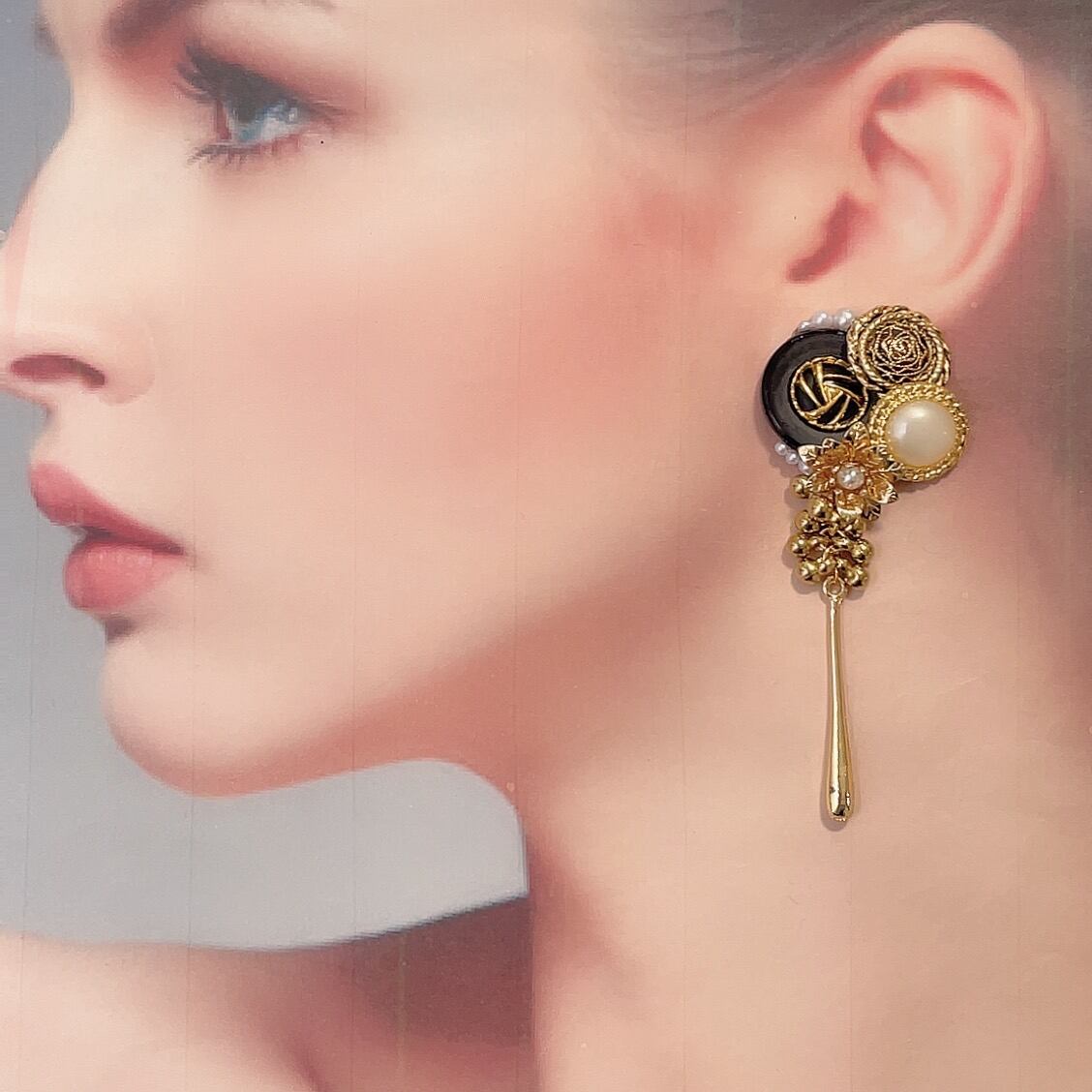 【#65】ヴィンテージボタン アシンメトリーピアス/イヤリング