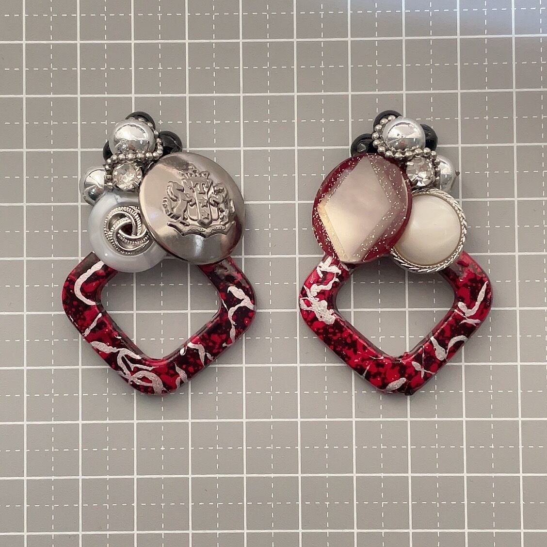 【#119】ヴィンテージボタン アシンメトリーピアス/イヤリング