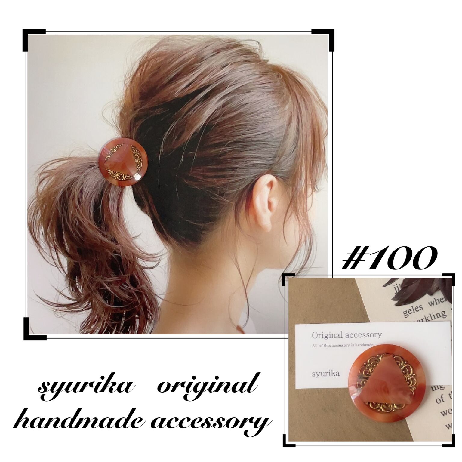 【#100】ヴィンテージボタン ヘアゴム/ポニーフック