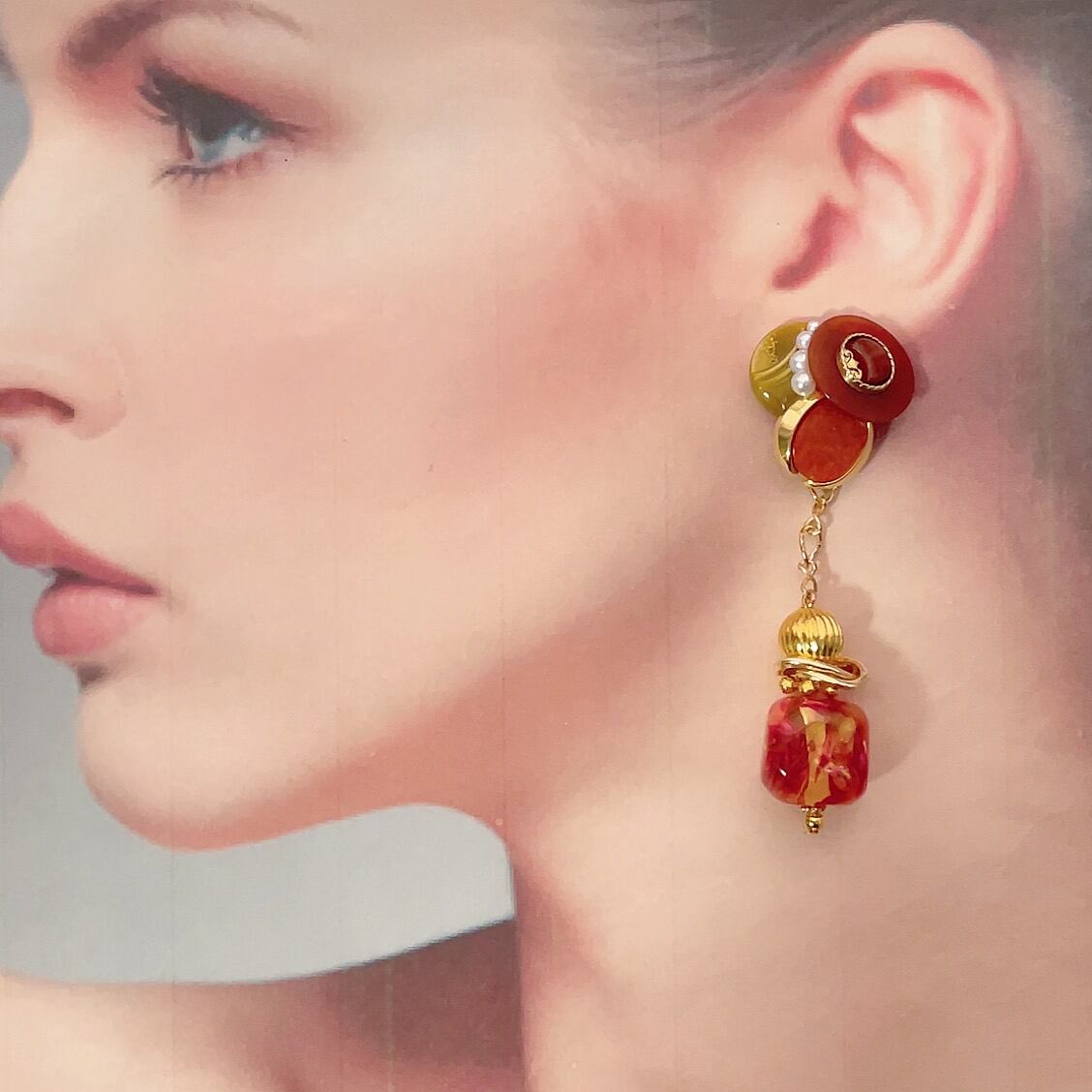 【#130】ヴィンテージボタン アシンメトリーピアス/イヤリング
