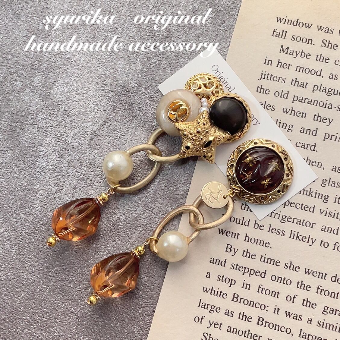 【#128】ヴィンテージボタン アシンメトリーピアス/イヤリング