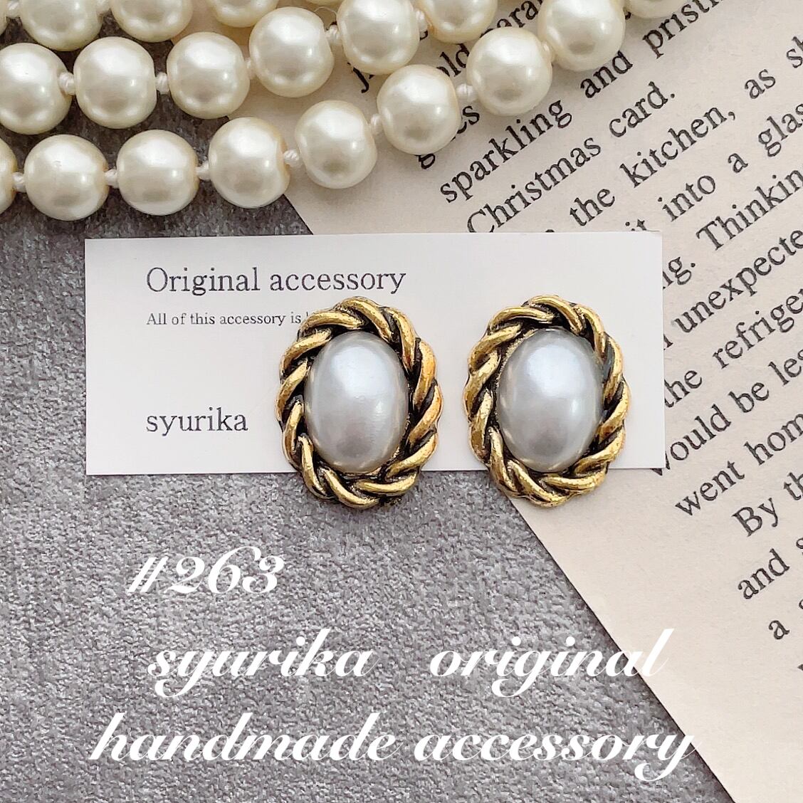 【#263】ゴールド×パール調デザイン ピアス/イヤリング
