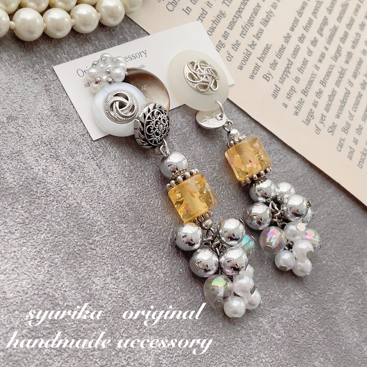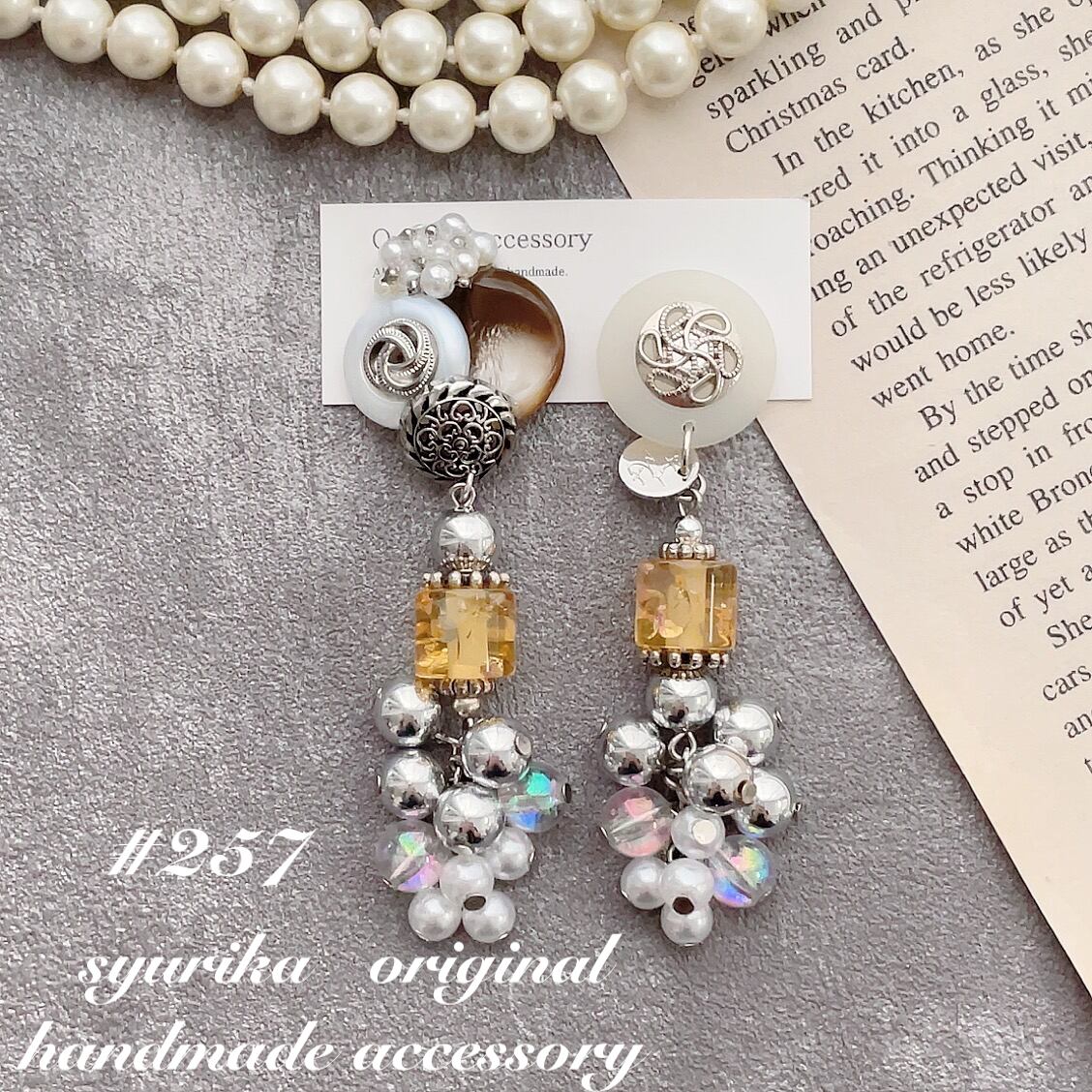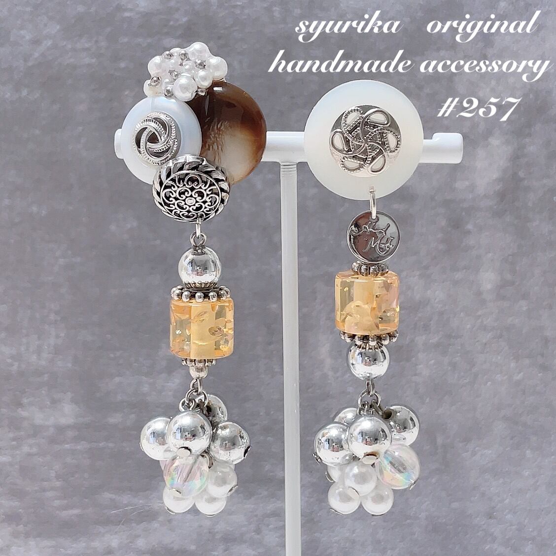 【#257】ヴィンテージボタン アシンメトリーピアス/イヤリング