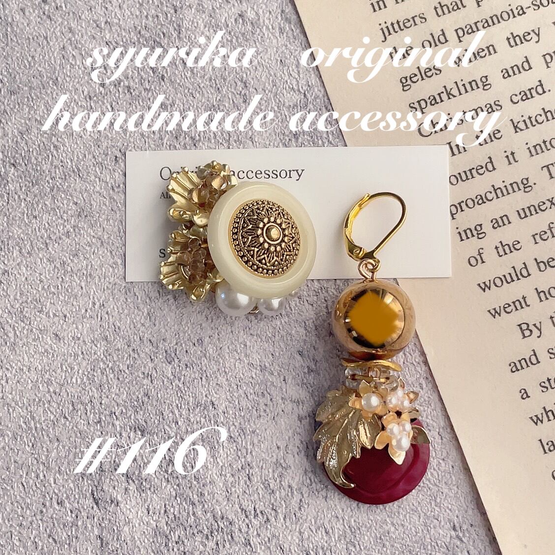 【#116】ヴィンテージボタン アシンメトリーピアス/イヤリング