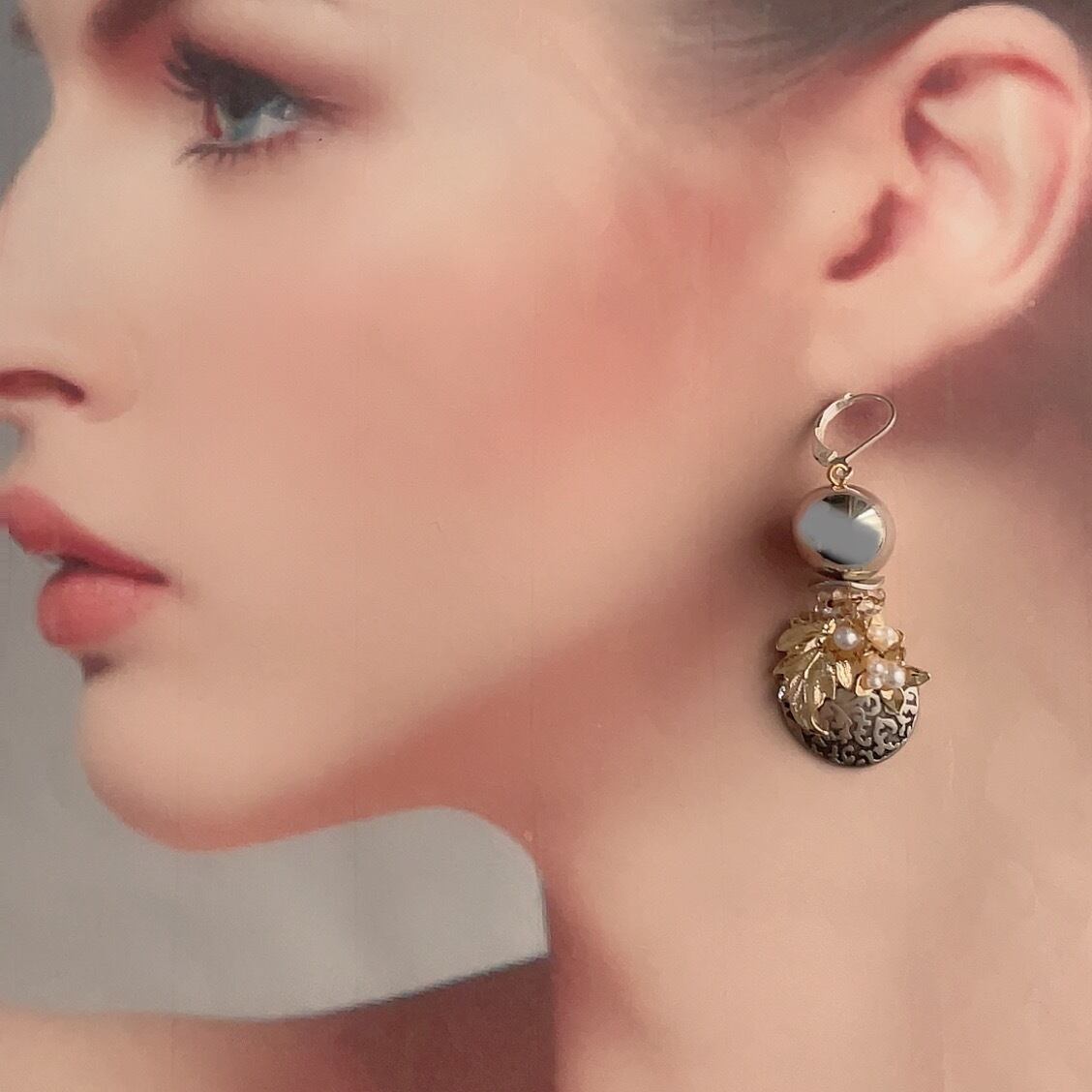 【#115】ヴィンテージボタン アシンメトリーピアス/イヤリングハンドメイド
