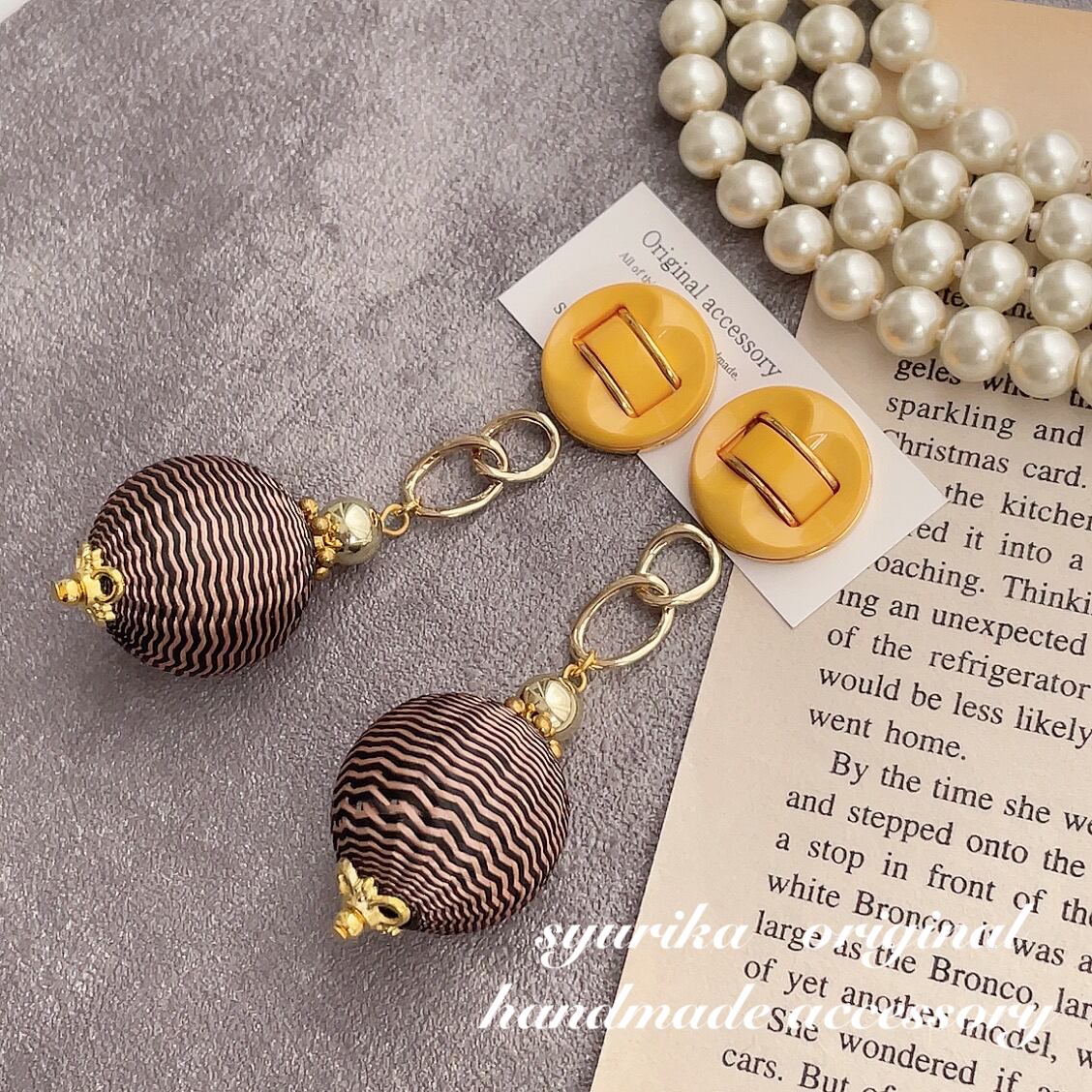 【#344】ヴィンテージボタン ピアス/イヤリング レトロイエロー