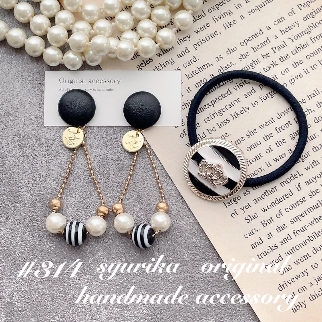 【#314】ボタンピアス/イヤリング・ボタンヘアゴム2点セット ハンドメイド
