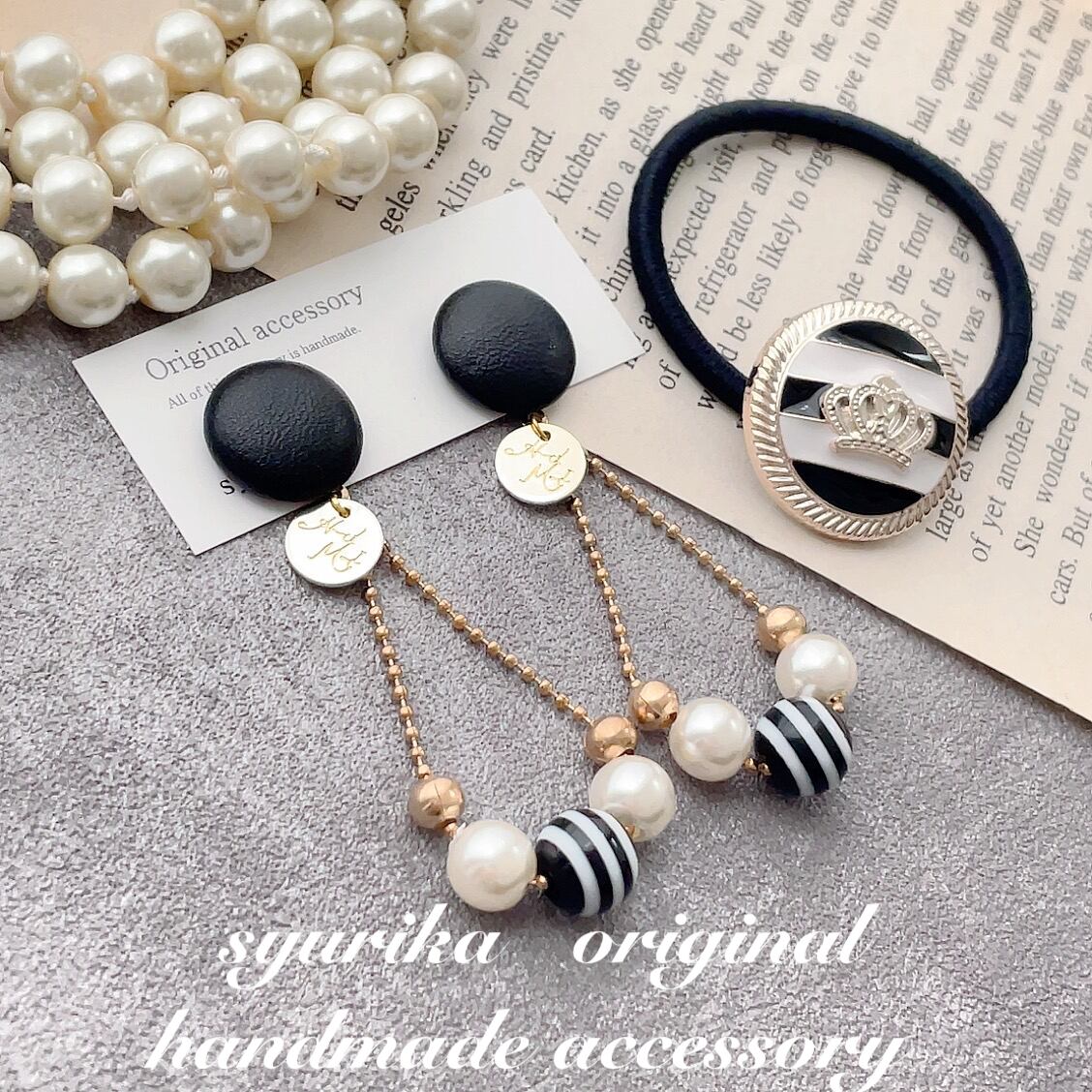 ボタンピアス/イヤリングとボタンヘアゴムの