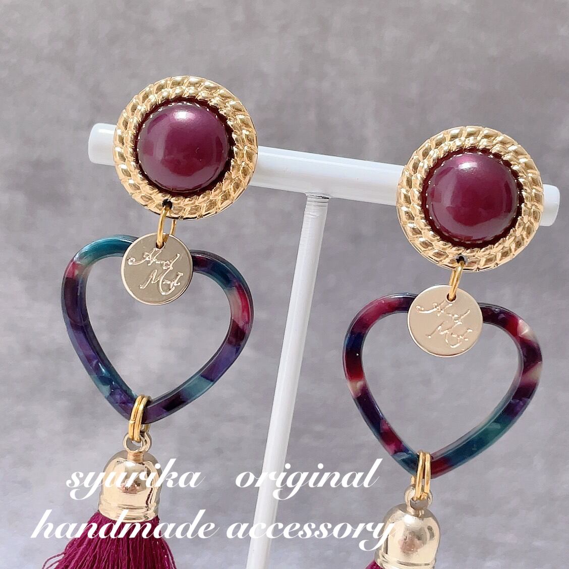 ボルドータッセルのボタンピアス/イヤリングです♪