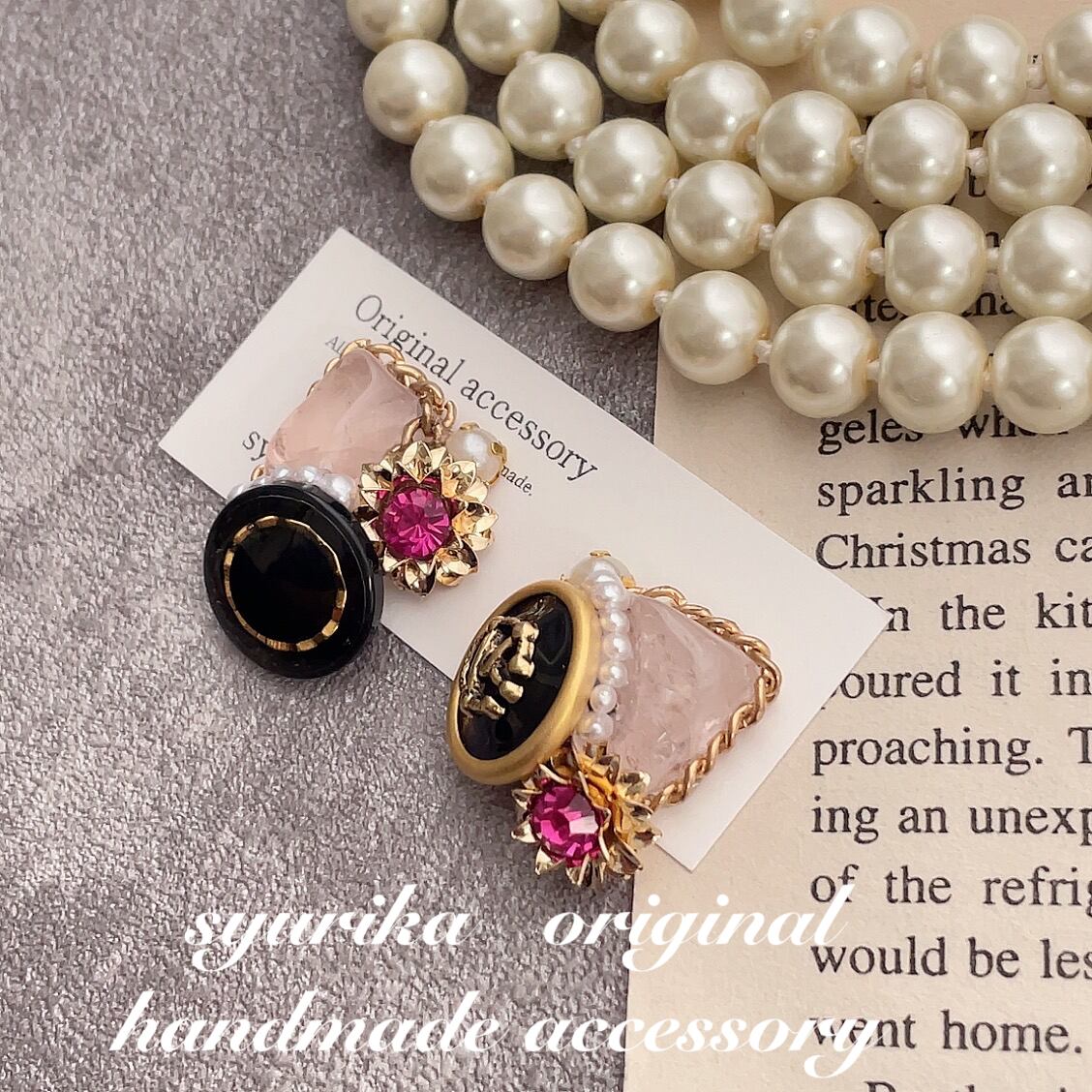 ヴィンテージボタン×天然石ピアス/イヤリングです♪