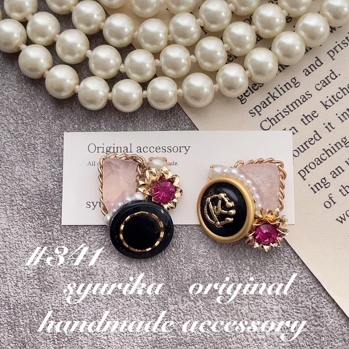 【#341】ヴィンテージボタン×天然石 ピアス/イヤリング ハンドメイドプチプラ