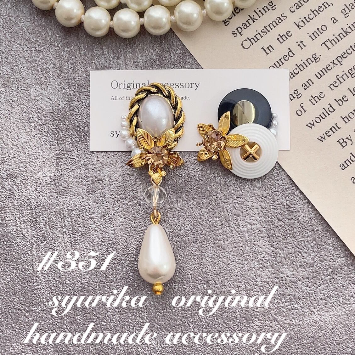 【#351】ヴィンテージボタン アシンメトリーピアス/イヤリングハンドメイド