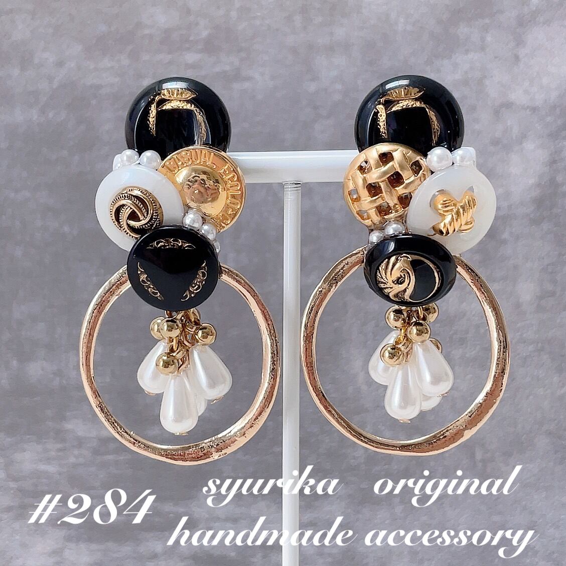【#284】ヴィンテージボタン アシンメトリーピアス/イヤリングハンドメイド