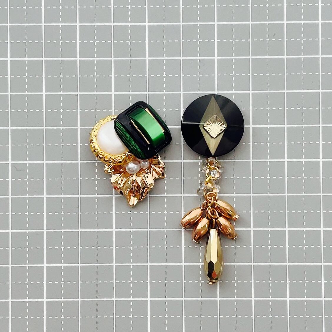 【#396】ヴィンテージボタン アシンメトリーピアス/イヤリング
